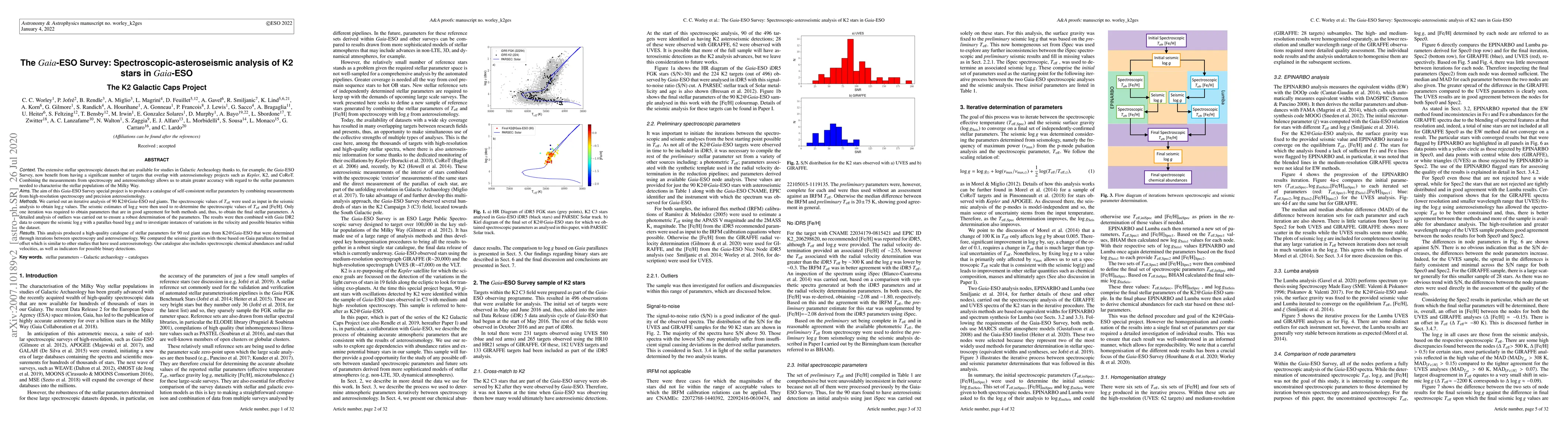 The Gaia-ESO Survey combined high-resolution spectroscopy and precision asteroseismology to produce a high-quality catalogue of stellar parameters for 90 K2 red giants, achieving self-consistent values through iterative analysis. The study also identified possible binaries and compared seismic gravities with Gaia parallax-based values.