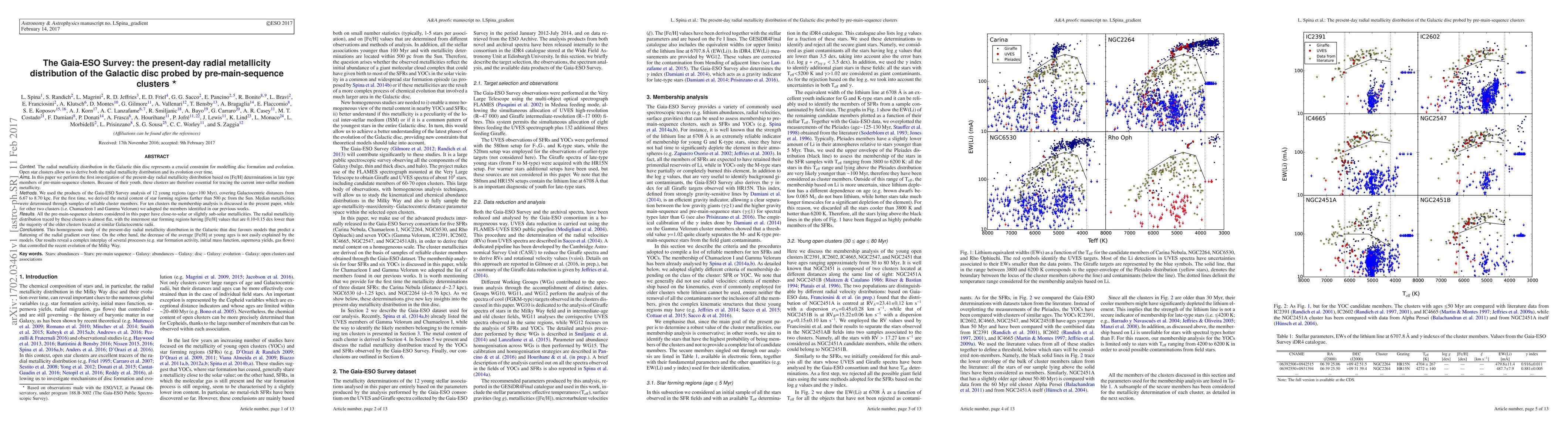 This paper investigates the present-day radial metallicity distribution in the Galactic thin disc using pre-main-sequence clusters from the Gaia-ESO Survey, revealing a nearly flat distribution with slightly lower metallicities in the innermost regions. The findings support models predicting a flattening of the radial gradient over time but challenge existing models to explain the observed decrease in average metallicity at young ages.