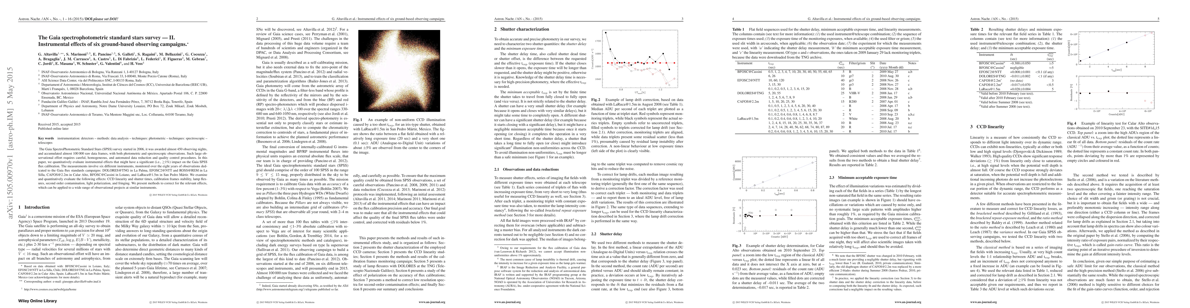 This paper evaluates instrumental effects from six ground-based telescopes used in the Gaia SpectroPhotometric Standard Stars survey, assessing impacts on flux calibration. It identifies and corrects for issues such as CCD linearity, shutter times, and light polarization, providing methods applicable to similar observational projects.