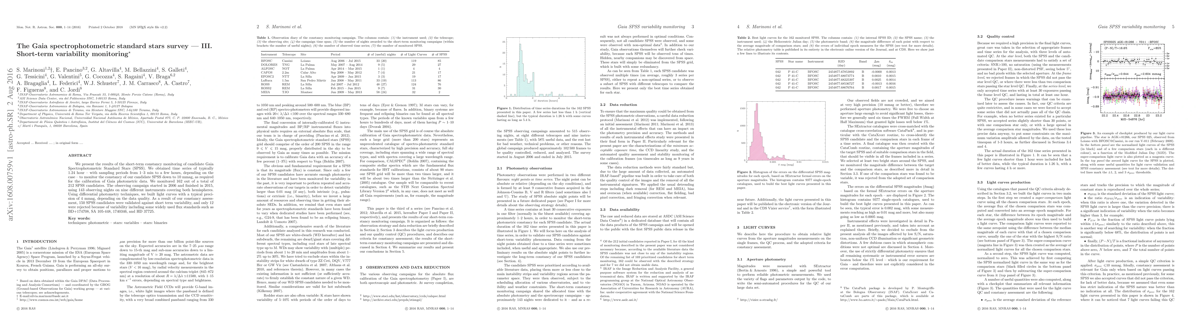 The research conducted a short-term variability monitoring campaign for candidate Gaia Spectrophotometric Standard Stars (SPSS) using time series data with sampling periods from 1-3 minutes to a few hours. Differential photometry techniques were employed to build light curves with a typical precision of 4 mmag.