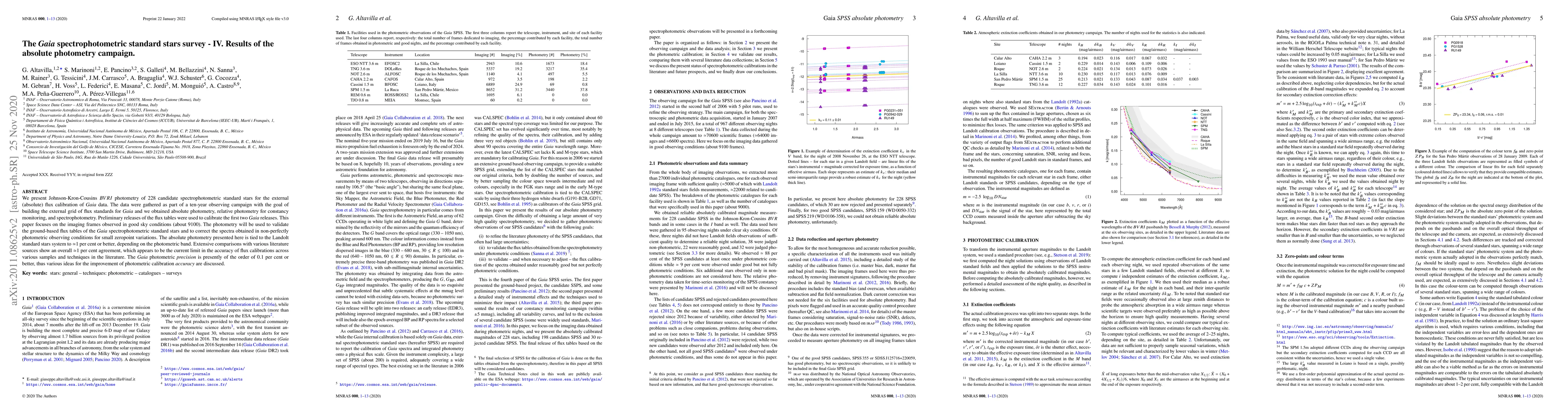 This paper presents Johnson-Kron-Cousins BVRI photometry of 228 candidate spectrophotometric standard stars for calibrating Gaia data, achieving an accuracy tied to the Landolt standard system at about 1 per cent. The results aim to improve the Gaia photometric precision and validate ground-based flux tables.