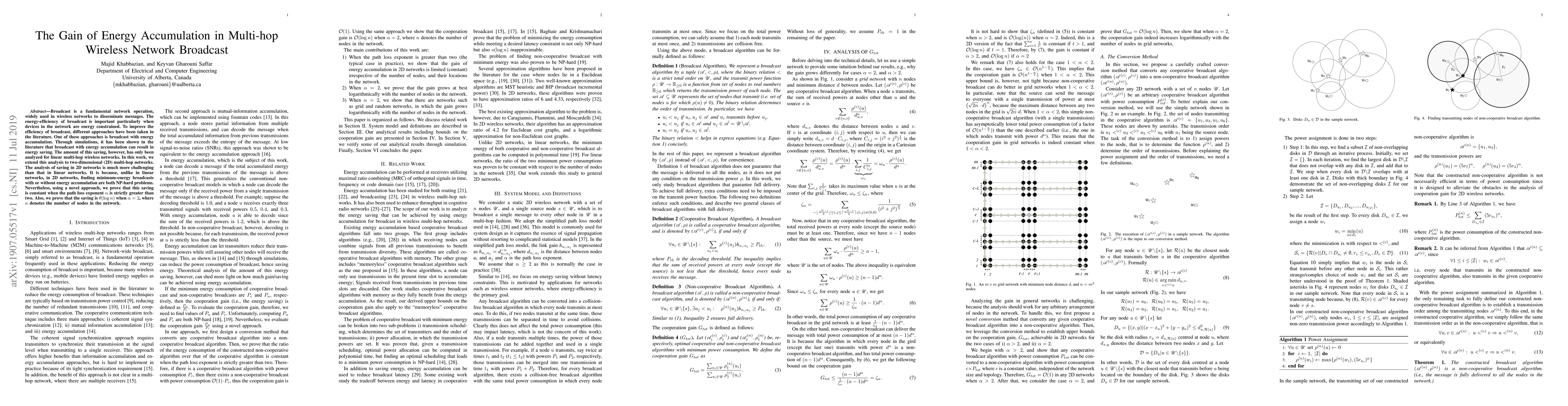 This paper extends the analysis of energy-efficient broadcast with energy accumulation to two-dimensional multi-hop wireless networks, proving constant energy savings when the path loss exponent is greater than two, and logarithmic savings when it equals two. The complexity of analyzing 2D networks is significantly higher due to the NP-hard nature of the problem.