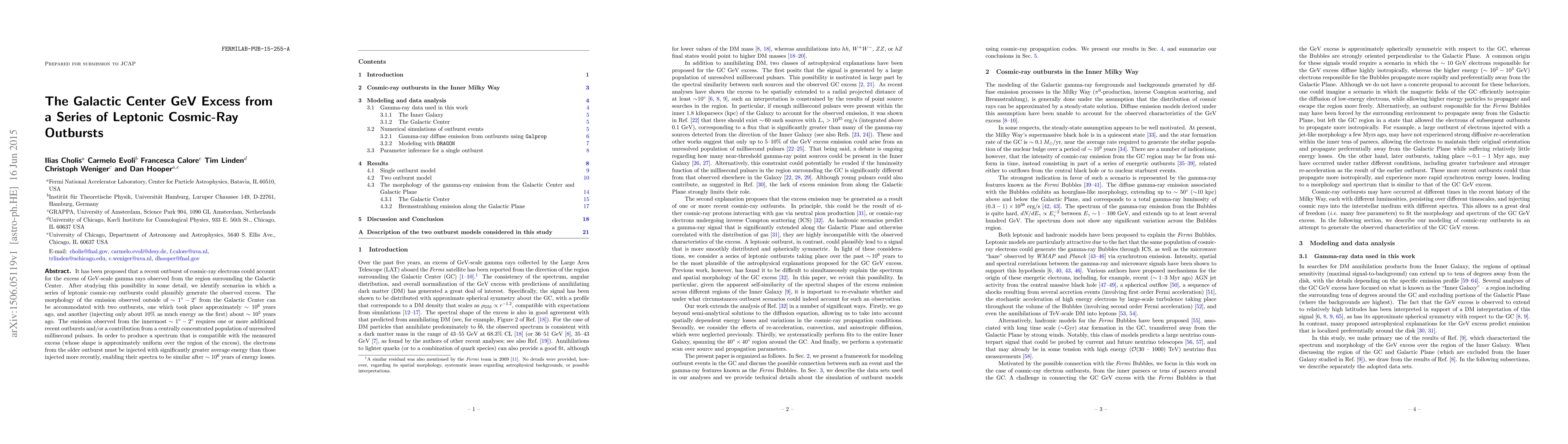 It has been proposed that a recent outburst of cosmic-ray electrons could account for the excess of GeV-scale gamma rays observed from the region surrounding the Galactic Center. After studying this possibility in some detail, we identify scenarios in which a series of leptonic cosmic-ray outbursts could plausibly generate the observed excess. The morphology of the emission observed outside of $\sim1^{\circ}-2^{\circ}$ from the Galactic Center can be accommodated with two outbursts, one which took place approximately $\sim10^6$ years ago, and another (injecting only about 10\% as much energy as the first) about $\sim10^5$ years ago. The emission observed from the innermost $\sim1^{\circ}-2^{\circ}$ requires one or more additional recent outbursts and/or a contribution from a centrally concentrated population of unresolved millisecond pulsars. In order to produce a spectrum that is compatible with the measured excess (whose shape is approximately uniform over the region of the excess), the electrons from the older outburst must be injected with significantly greater average energy than those injected more recently, enabling their spectra to be similar after $\sim10^6$ years of energy losses.
