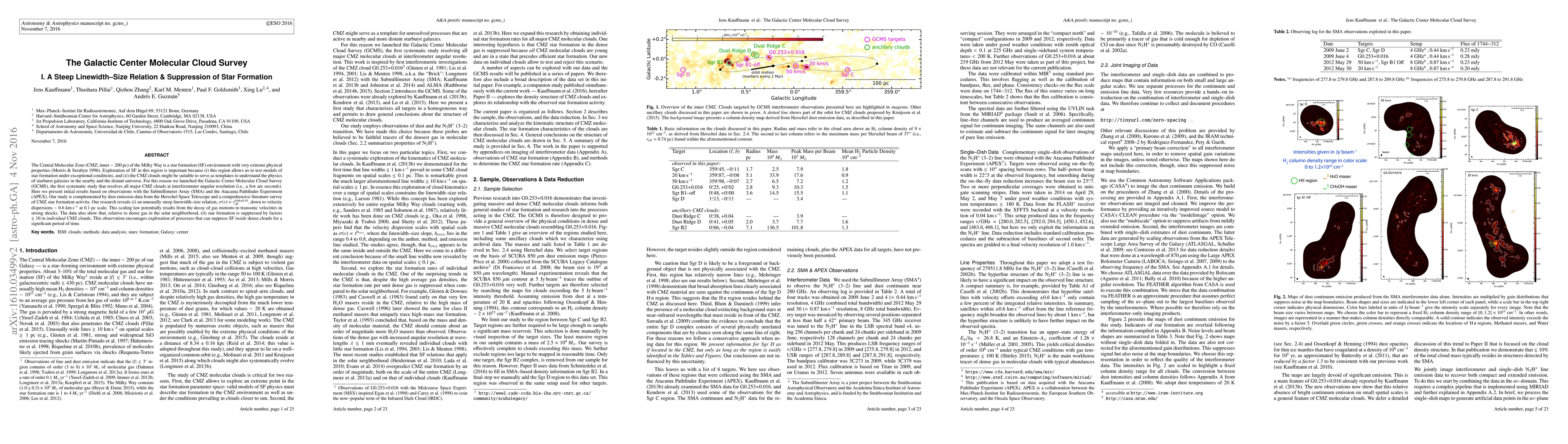 Researchers found a steep relation between linewidth and size in molecular clouds near the Galactic Center, suggesting strong shocks that suppress star formation by factors of up to 10.