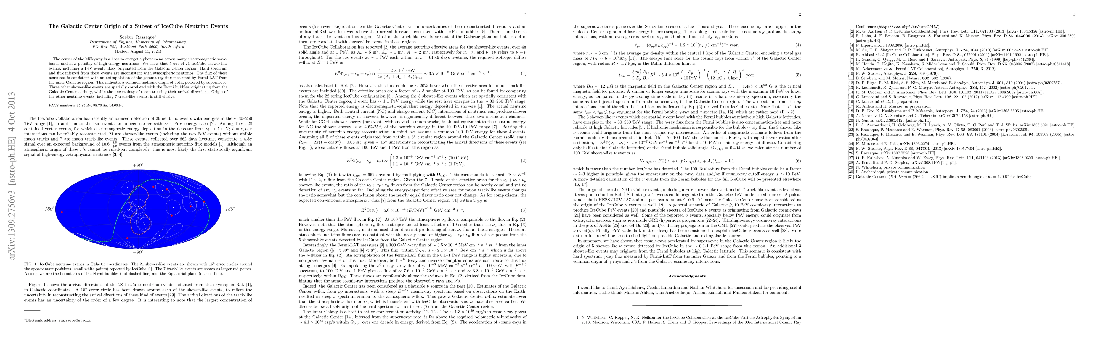 The IceCube Neutrino Observatory detected 5 out of 21 shower-like events likely originating from the Galactic Center, suggesting a common hadronic origin powered by supernovae. The remaining events' origins remain uncertain, though some correlate with the Fermi bubbles.