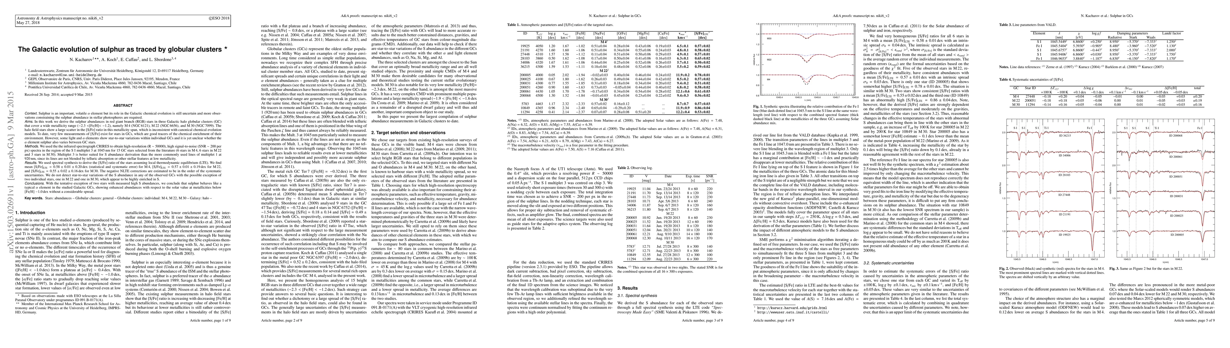 This paper investigates the sulphur abundance in three Galactic globular clusters (M4, M22, M30) using high-resolution spectra, finding that sulphur behaves like a typical alpha element with enhanced abundances at low metallicities, inconsistent with the large scatter seen in field stars. The study suggests a lack of significant sulphur variation among cluster stars.