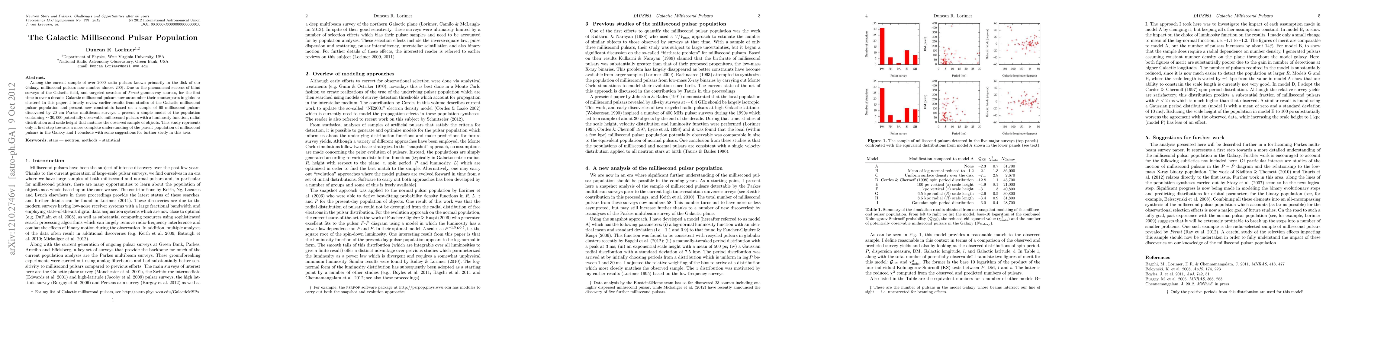 This paper reviews the growing population of Galactic millisecond pulsars, now surpassing those in globular clusters, and presents new constraints based on 60 newly discovered pulsars. It proposes a model suggesting around 30,000 observable millisecond pulsars in the Galaxy, highlighting the need for further research to fully understand this population.