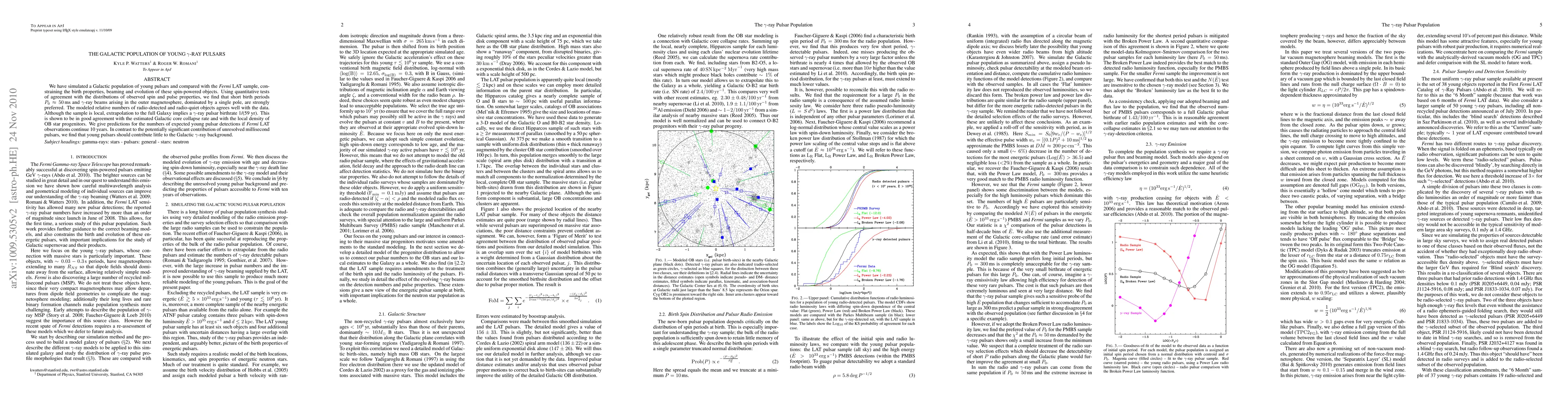 This paper simulates a Galactic population of young gamma-ray pulsars and finds that short birth periods (~50ms) and gamma-ray beams originating from the outer magnetosphere are preferred. The study aligns the birthrate of gamma-ray pulsars with the Galactic core collapse rate and predicts minimal contribution to the Galactic gamma-ray background.