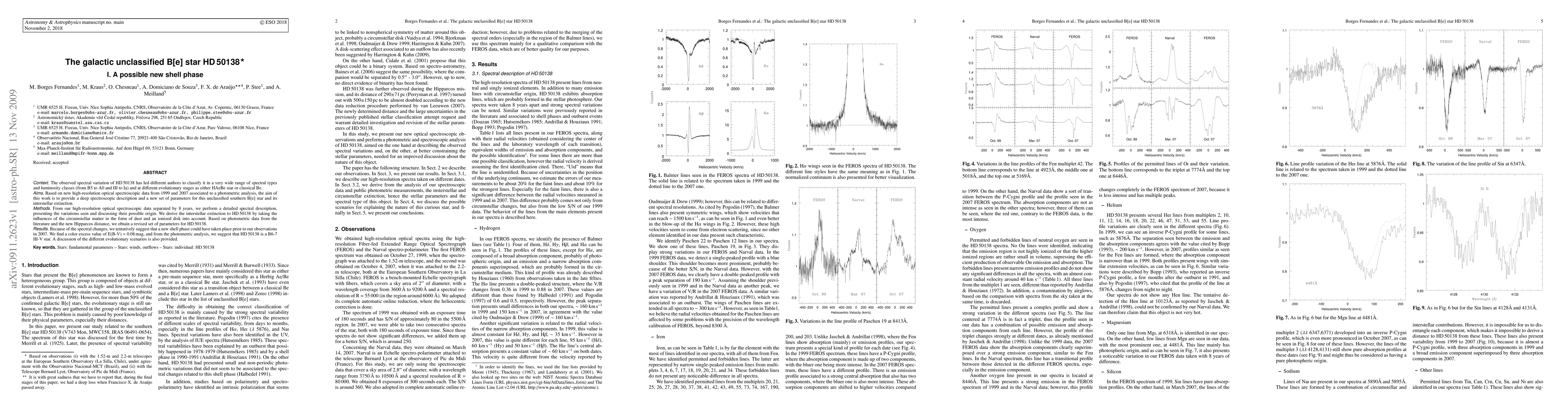 The observed spectral variation of HD 50138 has led different authors to classify it in a very wide range of spectral types and luminosity classes (from B5 to A0 and III to Ia) and at different evolutionary stages as either HAeBe star or classical Be. Aims: Based on new high-resolution optical spectroscopic data from 1999 and 2007 associated to a photometric analysis, the aim of this work is to provide a deep spectroscopic description and a new set of parameters for this unclassified southern B[e] star and its interstellar extinction. Methods: From our high-resolution optical spectroscopic data separated by 8 years, we perform a detailed spectral description, presenting the variations seen and discussing their possible origin. We derive the interstellar extinction to HD 50138 by taking the influences of the circumstellar matter in the form of dust and an ionized disk into account. Based on photometric data from the literature and the new Hipparcos distance, we obtain a revised set of parameters for HD 50138. Results: Because of the spectral changes, we tentatively suggest that a new shell phase could have taken place prior to our observations in 2007. We find a color excess value of E(B-V) = 0.08 mag, and from the photometric analysis, we suggest that HD 50138 is a B6-7 III-V star. A discussion of the different evolutionary scenarios is also provided.