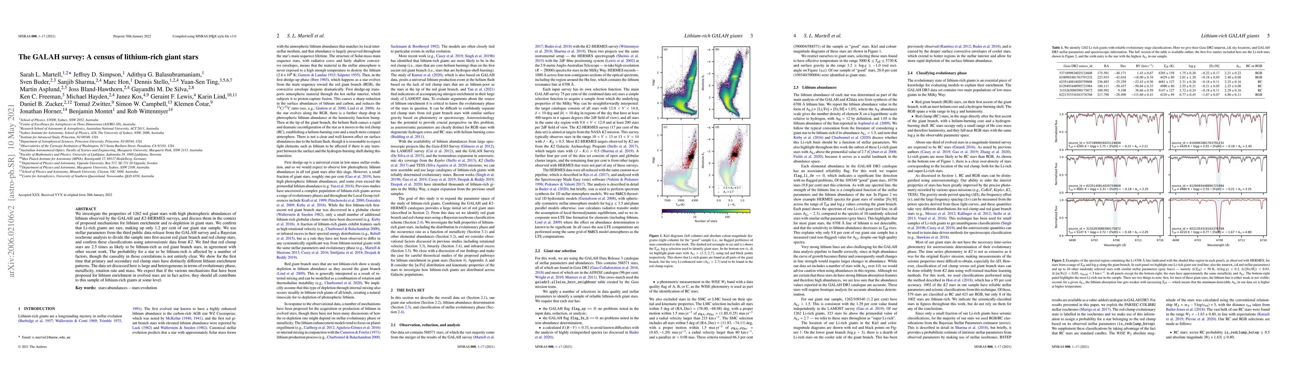 The GALAH survey identifies 1262 red giant stars with high lithium abundances, confirming that Li-rich giants are rare (1.2% of the sample). Red clump stars are 2.5 times more likely to be lithium-rich than first-ascent red giant branch stars, revealing distinct lithium enrichment patterns between primary and secondary red clump stars.