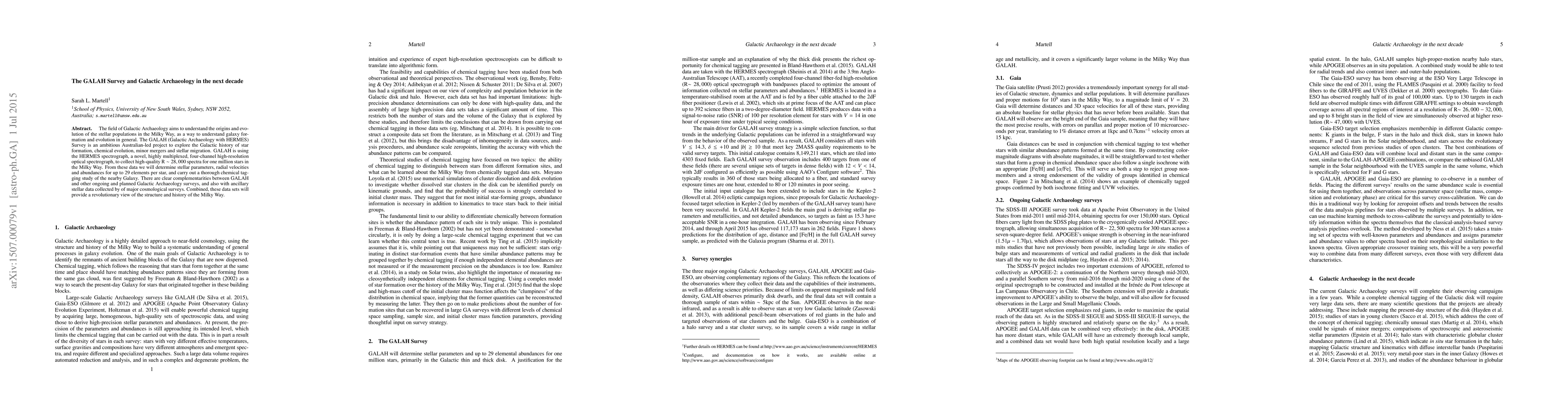 The field of Galactic Archaeology aims to understand the origins and evolution of the stellar populations in the Milky Way, as a way to understand galaxy formation and evolution in general. The GALAH (Galactic Archaeology with HERMES) Survey is an ambitious Australian-led project to explore the Galactic history of star formation, chemical evolution, minor mergers and stellar migration. GALAH is using the HERMES spectrograph, a novel, highly multiplexed, four-channel high-resolution optical spectrograph, to collect high-quality R ~ 28,000 spectra for one million stars in the Milky Way. From these data we will determine stellar parameters, radial velocities and abundances for up to 29 elements per star, and carry out a thorough chemical tagging study of the nearby Galaxy. There are clear complementarities between GALAH and other ongoing and planned Galactic Archaeology surveys, and also with ancillary stellar data collected by of major cosmological surveys. Combined, these data sets will provide a revolutionary view of the structure and history of the Milky Way.