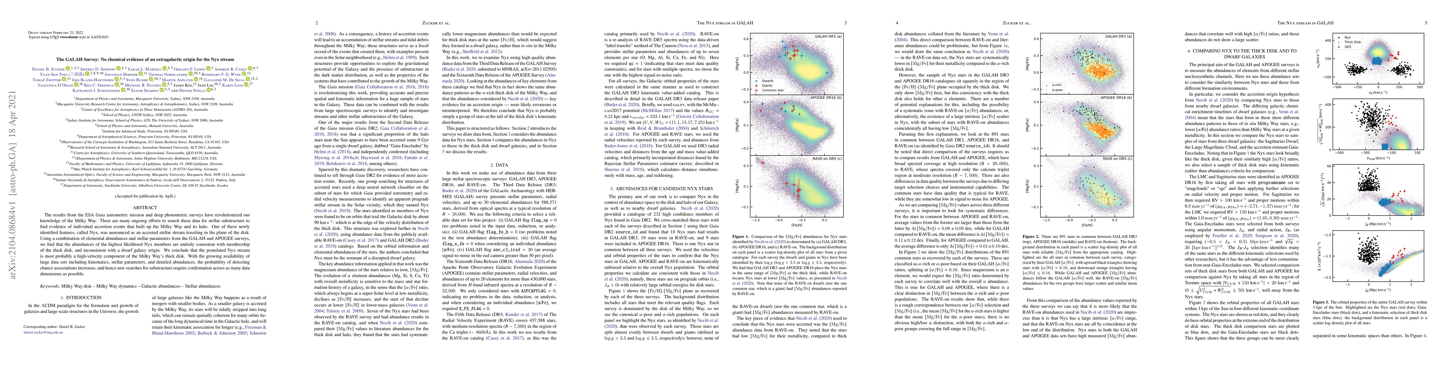 The results from the ESA Gaia astrometric mission and deep photometric surveys have revolutionized our knowledge of the Milky Way. There are many ongoing efforts to search these data for stellar substructure to find evidence of individual accretion events that built up the Milky Way and its halo. One of these newly identified features, called Nyx, was announced as an accreted stellar stream traveling in the plane of the disk. Using a combination of elemental abundances and stellar parameters from the GALAH and APOGEE surveys, we find that the abundances of the highest likelihood Nyx members are entirely consistent with membership of the thick disk, and inconsistent with a dwarf galaxy origin. We conclude that the postulated Nyx stream is most probably a high-velocity component of the Milky Way's thick disk. With the growing availability of large data sets including kinematics, stellar parameters, and detailed abundances, the probability of detecting chance associations increases, and hence new searches for substructure require confirmation across as many data dimensions as possible.