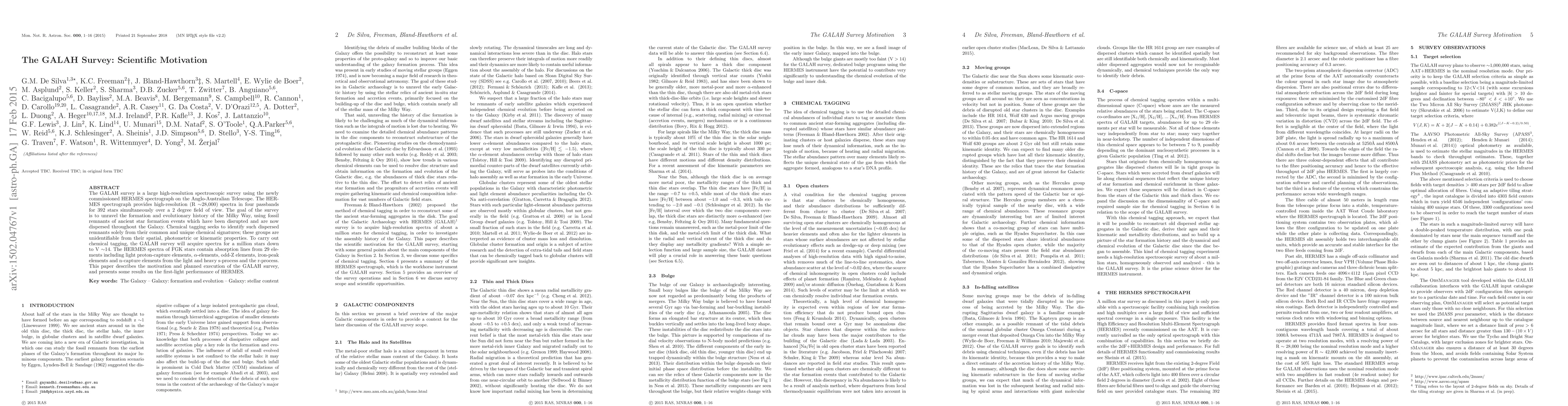 The GALAH survey aims to use high-resolution spectroscopic data from the HERMES spectrograph to unravel the Milky Way's formation and evolutionary history through chemical tagging of dispersed remnants of ancient star formation. The survey will acquire spectra for a million stars to identify unique chemical signatures.