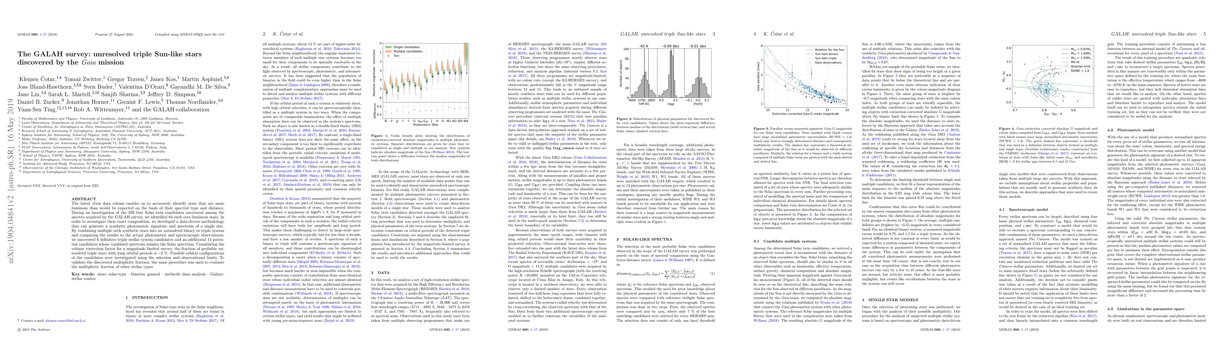 The GALAH survey, using the latest Gaia data, identified 64 over-luminous stars among 329 Solar twin candidates, uncovering 6 definitive and 14 potential unresolved triple star systems. The study estimates a ~2% fraction of long-period triple stars in the survey volume.