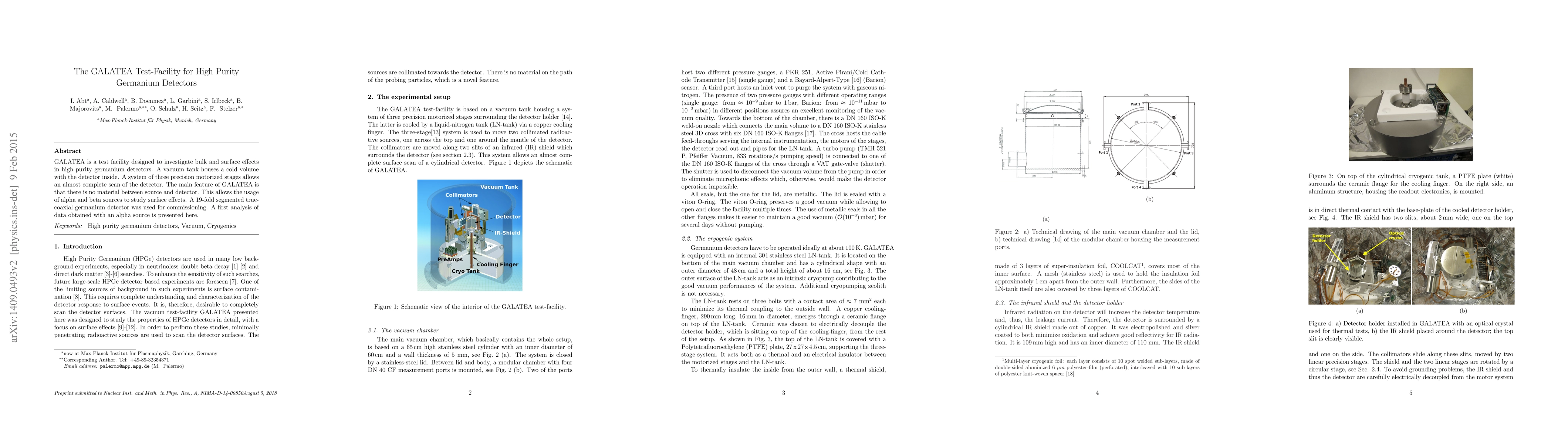 Summary: GALATEA is a specialized test facility for studying bulk and surface effects in high purity germanium detectors, featuring a vacuum tank with an infrared-screened volume and a cooled detector to allow precise scanning. The facility's unique feature is the absence of material between the source and detector, enabling the use of alpha, beta sources, and laser beams for comprehensive surface effect analysis.