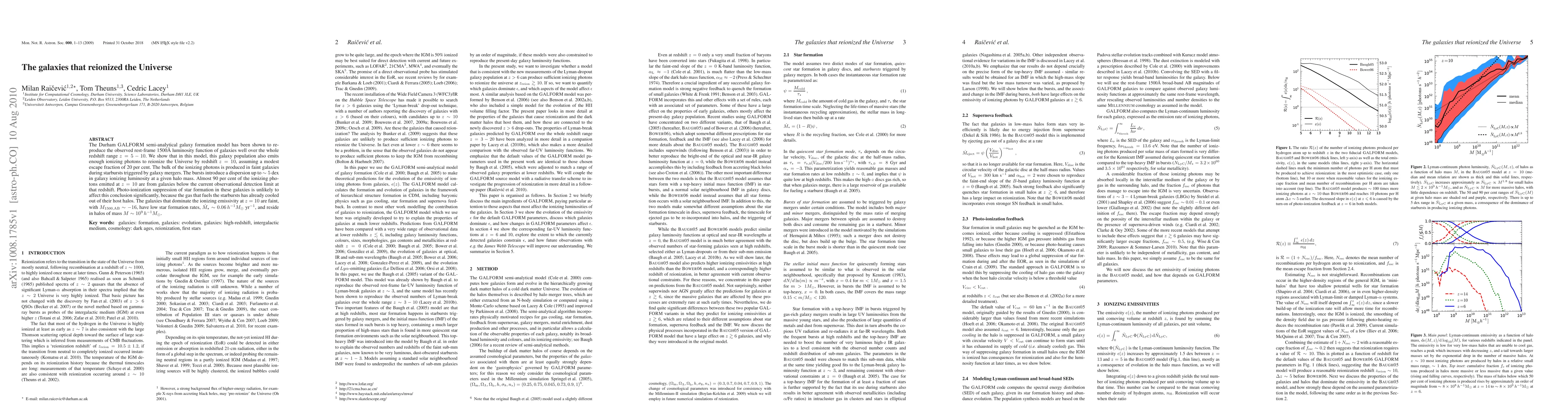 This paper uses the Durham GALFORM model to demonstrate that faint galaxies, particularly those below current observational limits, emit enough ionizing photons to reionize the Universe by redshift z=10, primarily through starbursts triggered by galaxy mergers. These galaxies have low star formation rates and reside in relatively small halos.