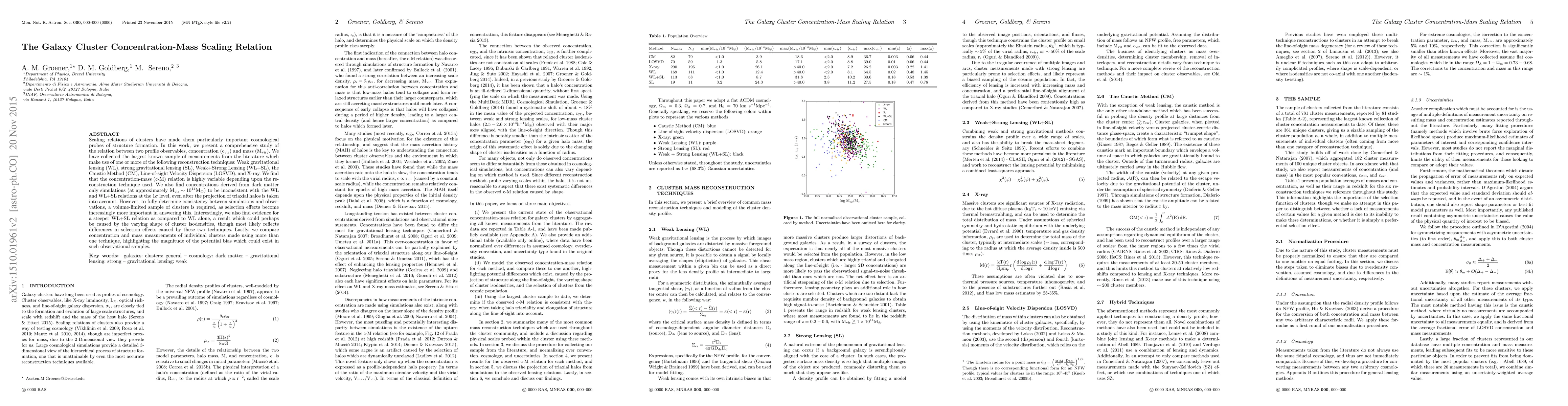 This study investigates the concentration-mass scaling relation in galaxy clusters, using various reconstruction techniques including weak and strong gravitational lensing. It finds significant variability in the concentration-mass relation depending on the method used, with discrepancies between observational and simulation-based data, suggesting the need for a volume-limited sample to resolve selection effects.