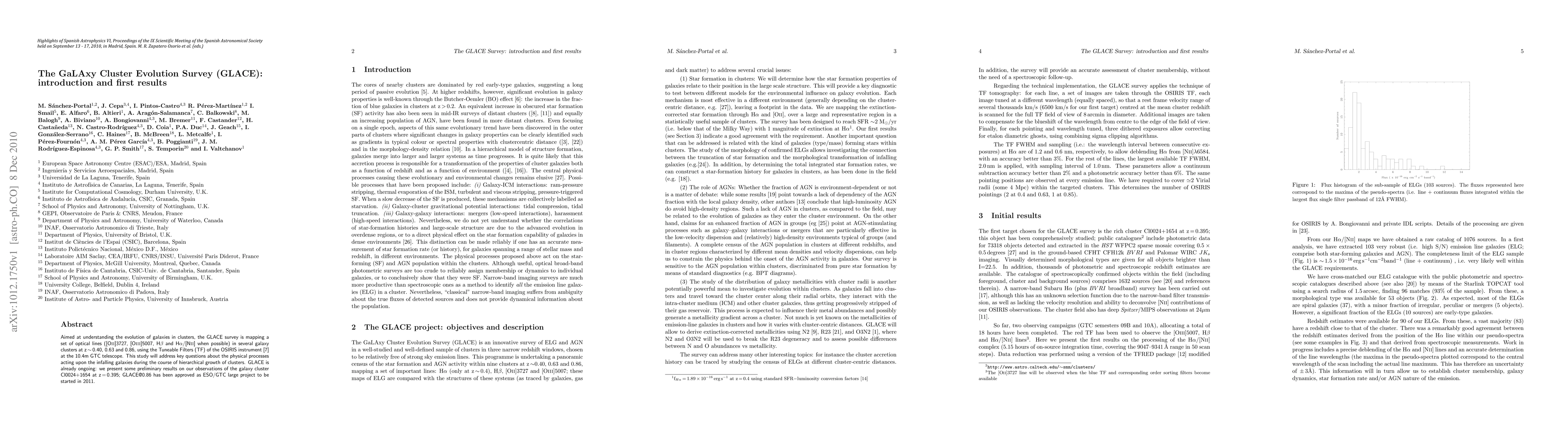 The GaLAxy Cluster Evolution Survey (GLACE) uses optical lines to study galaxy clusters at different redshifts, aiming to understand the physical processes acting upon infalling galaxies during cluster growth. Preliminary results from Cl0024+1654 have been presented, and a new ESO/GTC project has been approved to explore the evolution of galaxies in clusters.