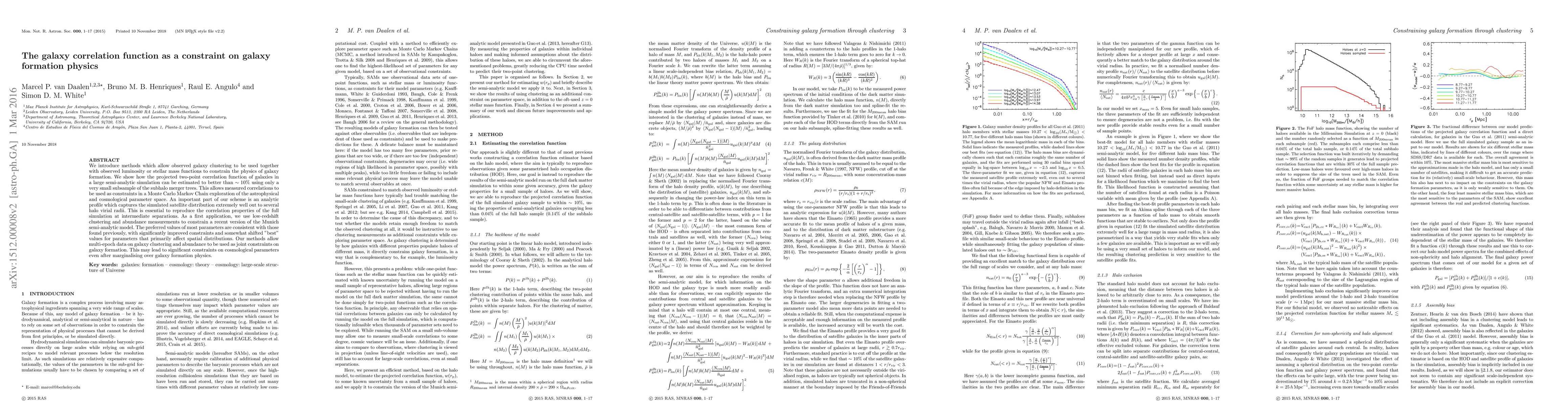 We introduce methods which allow observed galaxy clustering to be used together with observed luminosity or stellar mass functions to constrain the physics of galaxy formation. We show how the projected two-point correlation function of galaxies in a large semi-analytic simulation can be estimated to better than ~10% using only a very small subsample of the subhalo merger trees. This allows measured correlations to be used as constraints in a Monte Carlo Markov Chain exploration of the astrophysical and cosmological parameter space. An important part of our scheme is an analytic profile which captures the simulated satellite distribution extremely well out to several halo virial radii. This is essential to reproduce the correlation properties of the full simulation at intermediate separations. As a first application, we use low-redshift clustering and abundance measurements to constrain a recent version of the Munich semi-analytic model. The preferred values of most parameters are consistent with those found previously, with significantly improved constraints and somewhat shifted "best" values for parameters that primarily affect spatial distributions. Our methods allow multi-epoch data on galaxy clustering and abundance to be used as joint constraints on galaxy formation. This may lead to significant constraints on cosmological parameters even after marginalising over galaxy formation physics.