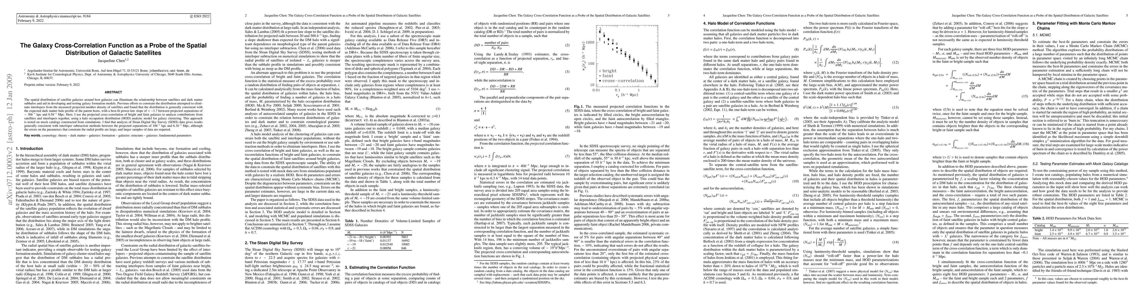 This research uses the galaxy cross-correlation function to study the spatial distribution of satellite galaxies around host galaxies, finding consistency with dark matter halo profiles. The methodology employs a halo occupation distribution (HOD) analytic model, tested on simulation-based mock catalogs, and applied to Sloan Digital Sky Survey (SDSS) data, revealing the need for larger datasets to reduce error in parameter constraints.