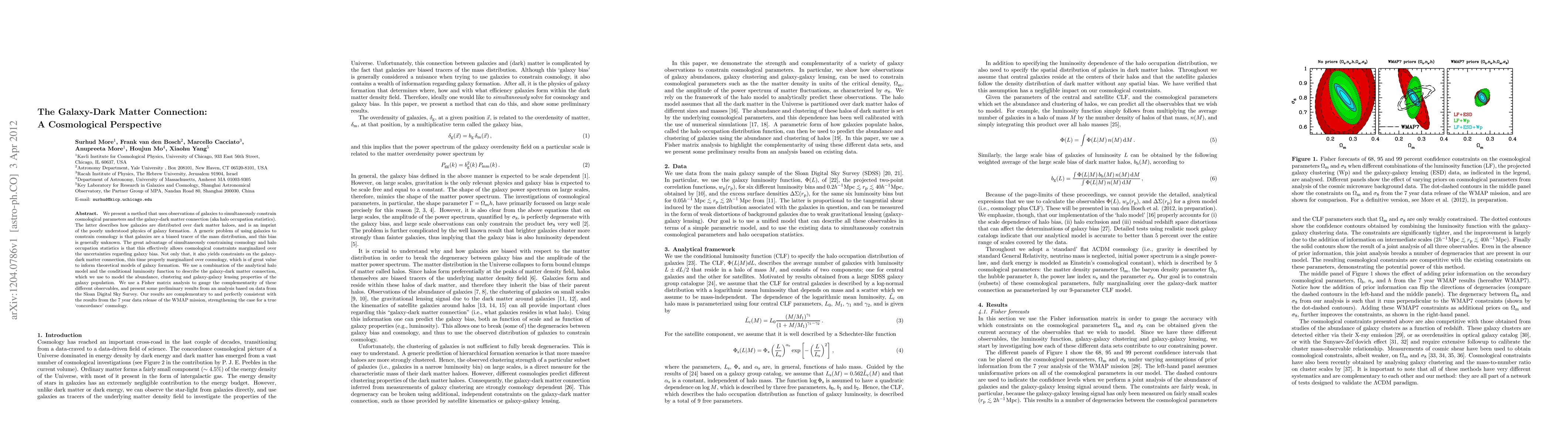 This paper develops a method to simultaneously constrain cosmological parameters and the galaxy-dark matter connection using galaxy observations, addressing the issue of galaxy bias. The approach combines analytical models and data from the Sloan Digital Sky Survey, yielding insights into galaxy formation and supporting a 'concordance' cosmology consistent with WMAP results.