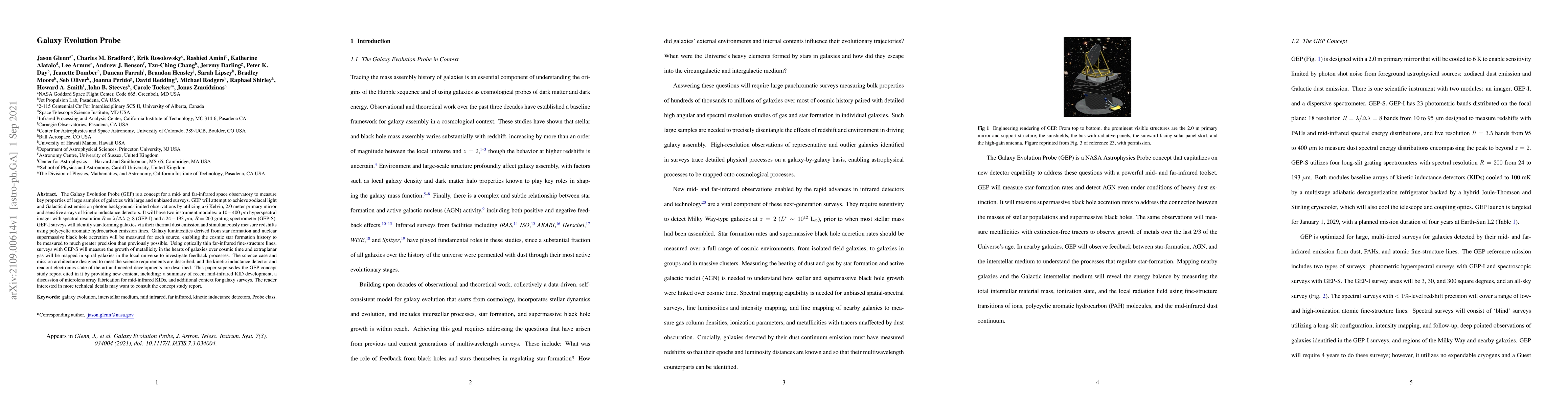 The Galaxy Evolution Probe (GEP) is a concept for a mid- and far-infrared space observatory to measure key properties of large samples of galaxies with large and unbiased surveys. GEP will attempt to achieve zodiacal light and Galactic dust emission photon background-limited observations by utilizing a 6 Kelvin, 2.0 meter primary mirror and sensitive arrays of kinetic inductance detectors. It will have two instrument modules: a 10 - 400 micron hyperspectral imager with spectral resolution R = 8 (GEP-I) and a 24 - 193 micron, R = 200 grating spectrometer (GEP-S). GEP-I surveys will identify star-forming galaxies via their thermal dust emission and simultaneously measure redshifts using polycyclic aromatic hydrocarbon emission lines. Galaxy luminosities derived from star formation and nuclear supermassive black hole accretion will be measured for each source, enabling the cosmic star formation history to be measured to much greater precision than previously possible. Using optically thin far-infrared fine-structure lines, surveys with GEP-S will measure the growth of metallicity in the hearts of galaxies over cosmic time and extraplanar gas will be mapped in spiral galaxies in the local universe to investigate feedback processes. The science case and mission architecture designed to meet the science requirements are described, and the kinetic inductance detector and readout electronics state of the art and needed developments are described. This paper supersedes the GEP concept study report cited in it by providing new content, including: a summary of recent mid-infrared KID development, a discussion of microlens array fabrication for mid-infrared KIDs, and additional context for galaxy surveys. The reader interested in more technical details may want to consult the concept study report.