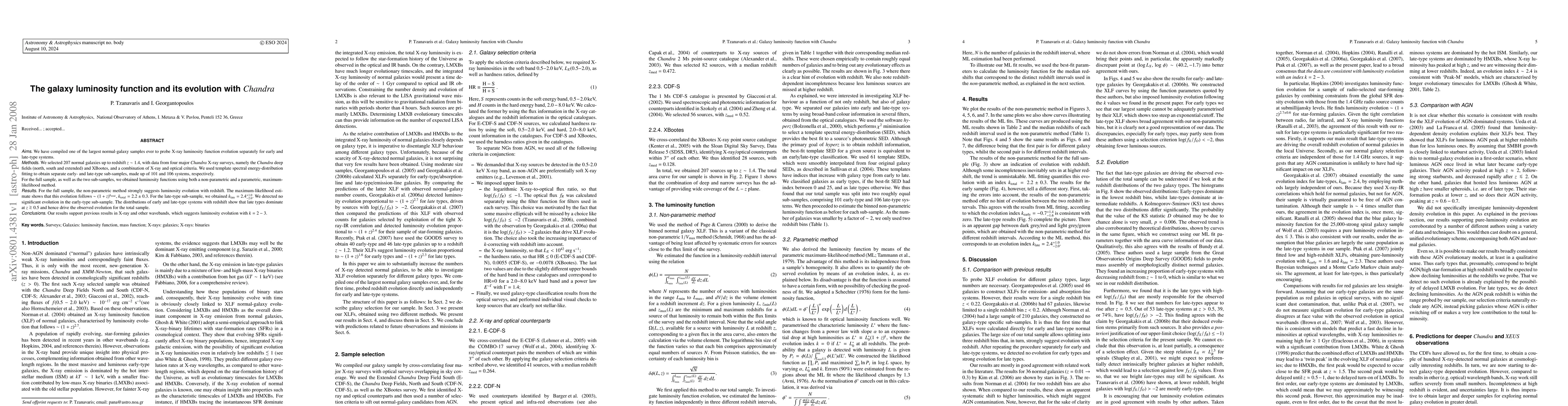 This paper investigates the evolution of the galaxy luminosity function using Chandra X-ray data, finding significant luminosity evolution for late-type galaxies but none for early-type galaxies, with late types dominating at higher redshifts. The overall evolution follows a power law of ~(1+z)^2.2±0.3.