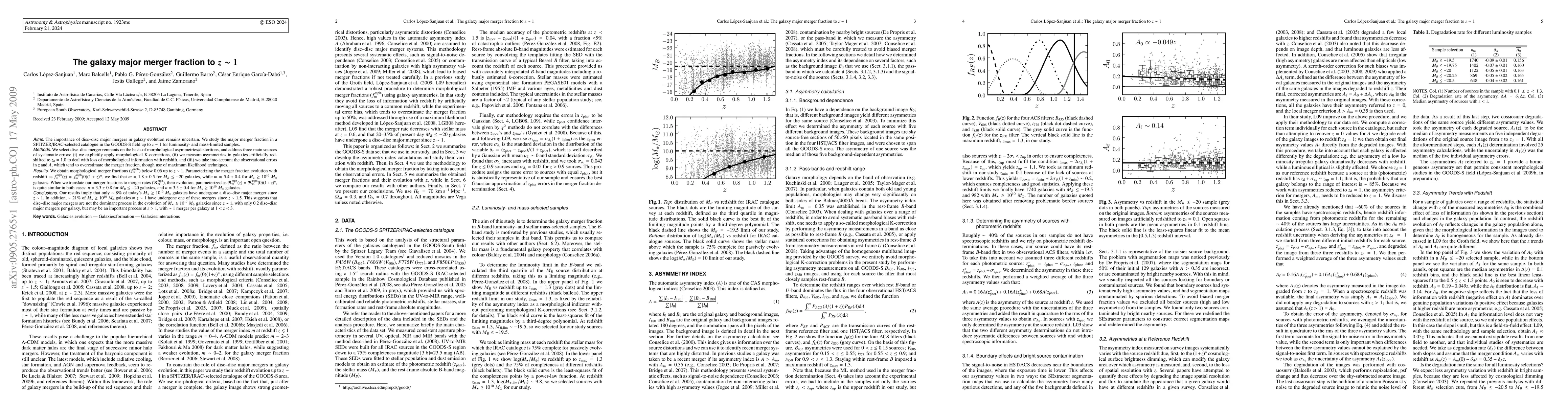 This study investigates the major merger fraction of disc-disc galaxies up to z ~ 1 using a Spitzer/IRAC-selected catalogue, finding that only ~8% of massive galaxies have undergone a major merger since z ~ 1, indicating that such mergers are not the primary driver of their evolution.