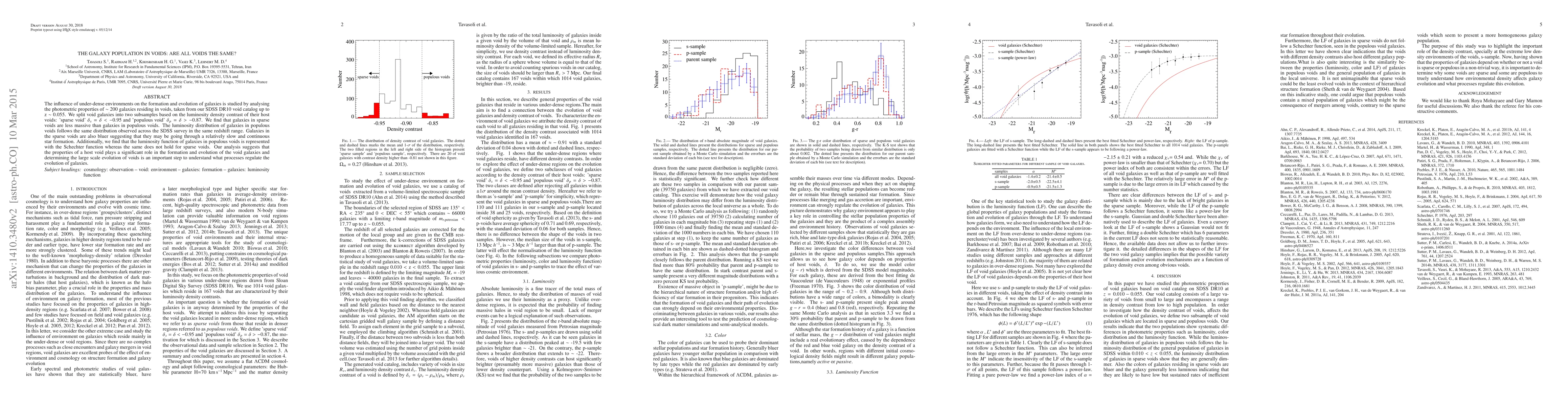 Galaxies in sparse voids are less massive and bluer than those in populous voids, suggesting a different formation process.