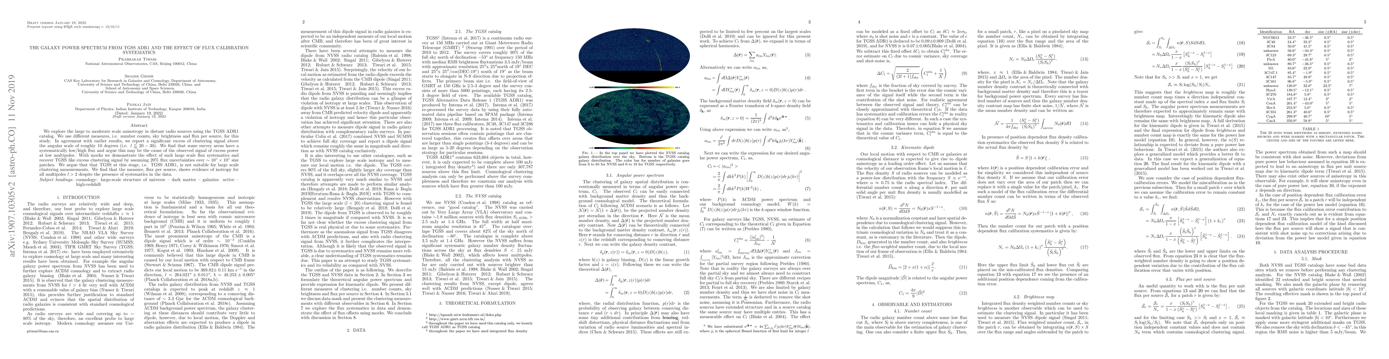 We explore the large to moderate scale anisotropy in distant radio sources using the TGSS ADR1 catalog. We use different measures, i.e. number counts, sky brightness and flux per source, for this study. In agreement with earlier results, we report a significant excess of clustering signal above the angular scale of roughly $10$ degrees (i.e. $l\lessapprox 20-30$). We find that some survey areas have a systematically low/high flux and argue this may be the cause of the observed signal of excess power at low multipoles. With mocks we demonstrate the effect of such large scale flux systematics and recover TGSS like excess clustering signal by assuming $20\%$ flux uncertainties over $\sim 10^\circ \times 10^\circ$ size patches. We argue that that TGSS at this stage, i.e. TGSS ADR1, is not suitable for large scale clustering measurements. We find that the measure, flux per source, shows evidence of isotropy for all multipoles $l > 2$ despite the presence of systematics in the data.