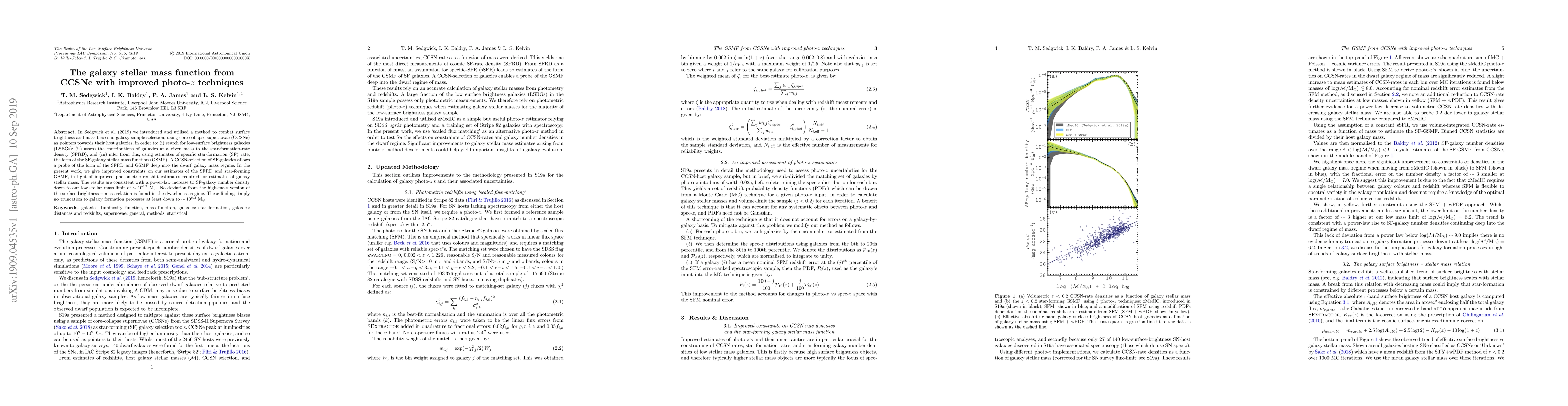In Sedgwick et al. (2019) we introduced and utilised a method to combat surface brightness and mass biases in galaxy sample selection, using core-collapse supernovae (CCSNe) as pointers towards their host galaxies, in order to: (i) search for low-surface brightness galaxies (LSBGs); (ii) assess the contributions of galaxies at a given mass to the star-formation-rate density (SFRD); and (iii) infer from this, using estimates of specific star-formation (SF) rate, the form of the SF-galaxy stellar mass function (GSMF). A CCSN-selection of SF-galaxies allows a probe of the form of the SFRD and GSMF deep into the dwarf galaxy mass regime. In the present work, we give improved constraints on our estimates of the SFRD and star-forming GSMF, in light of improved photometric redshift estimates required for estimates of galaxy stellar mass. The results are consistent with a power-law increase to SF-galaxy number density down to our low stellar mass limit of $\sim 10^{6.2}$ M$_{\odot}$. No deviation from the high-mass version of the surface brightness - mass relation is found in the dwarf mass regime. These findings imply no truncation to galaxy formation processes at least down to $\sim 10^{6.2}$ M$_{\odot}$.