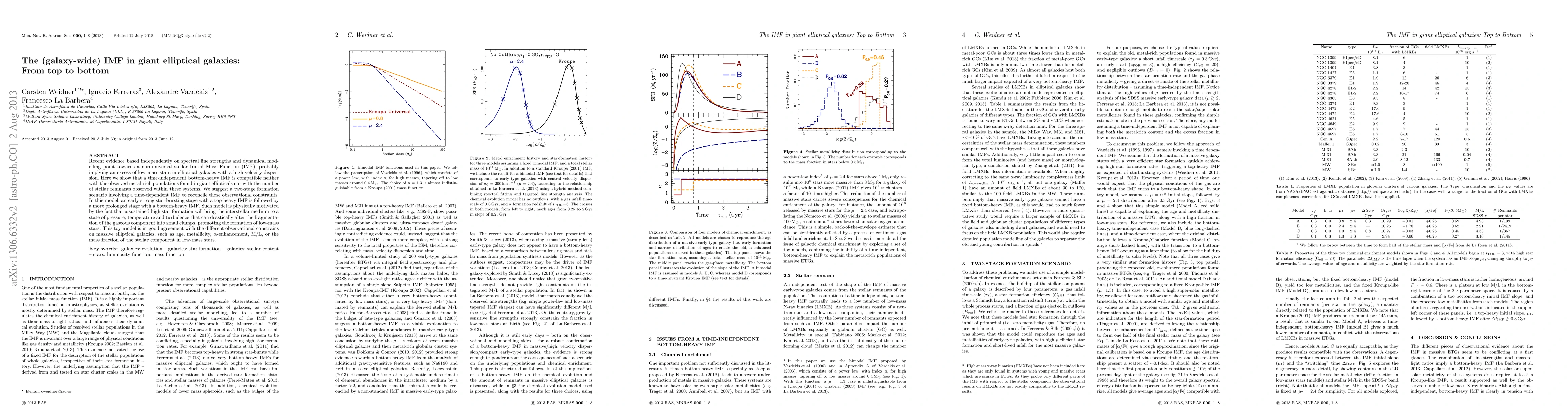 This paper argues against a non-universal stellar Initial Mass Function (IMF) in giant elliptical galaxies, proposing instead a two-stage formation scenario with a time-dependent IMF that explains the observed metal-rich populations and stellar remnants. The model features an early top-heavy IMF followed by a prolonged bottom-heavy IMF, driven by changes in the interstellar medium's physical conditions.