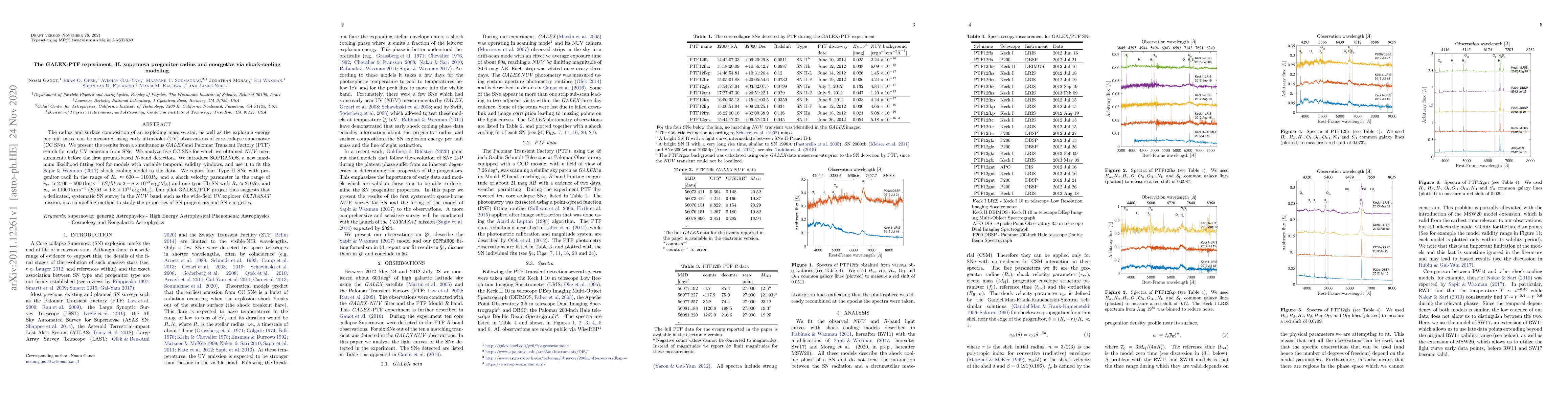 The radius and surface composition of an exploding massive star, as well as the explosion energy per unit mass, can be measured using early ultraviolet (UV) observations of core-collapse supernovae (CC SNe). We present the results from a simultaneous \GALEX and Palomar Transient Factory (PTF) search for early UV emission from SNe. We analyze five CC SNe for which we obtained $NUV$ measurements before the first ground-based $R$-band detection. We introduce SOPRANOS, a new maximum likelihood fitting tool for models with variable temporal validity windows, and use it to fit the \citet{SapirWaxman2017} shock cooling model to the data. We report four Type II SNe with progenitor radii in the range of $R_*\approx600-1100R_\odot$ and a shock velocity parameter in the range of $v_{s*}\approx 2700-6000 \,\rm km\,s^{-1}$ ($E/M\approx2-8\times10^{50}\,\rm erg/M_\odot$) and one type IIb SN with $R_*\approx210R_\odot$ and $v_{s*}\approx11000 \rm\, km\,s^{-1}$ ($E/M\approx1.8\times10^{51}\,\rm erg/M_\odot$). Our pilot GALEX/PTF project thus suggests that a dedicated, systematic SN survey in the $NUV$ band, such as the wide-field UV explorer \textit{ULTRASAT} mission, is a compelling method to study the properties of SN progenitors and SN energetics.