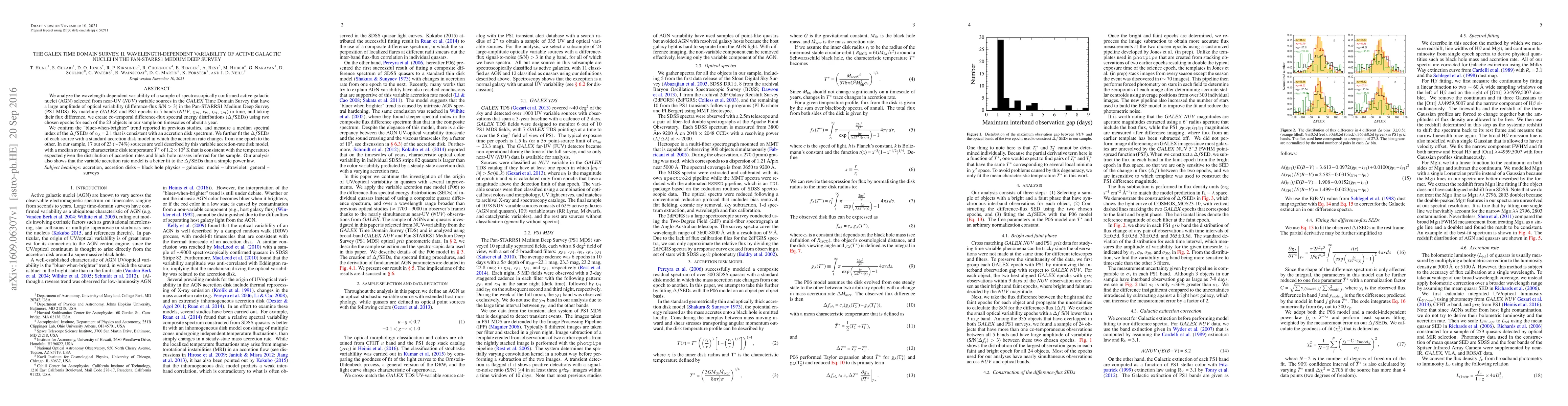 This paper examines the wavelength-dependent variability of active galactic nuclei (AGN) using data from the GALEX and Pan-STARRS1 surveys. It confirms the "bluer-when-brighter" trend and finds that a variable accretion-rate disk model fits the spectral energy distributions better than a simple power law, suggesting a connection between accretion disk dynamics and AGN variability.