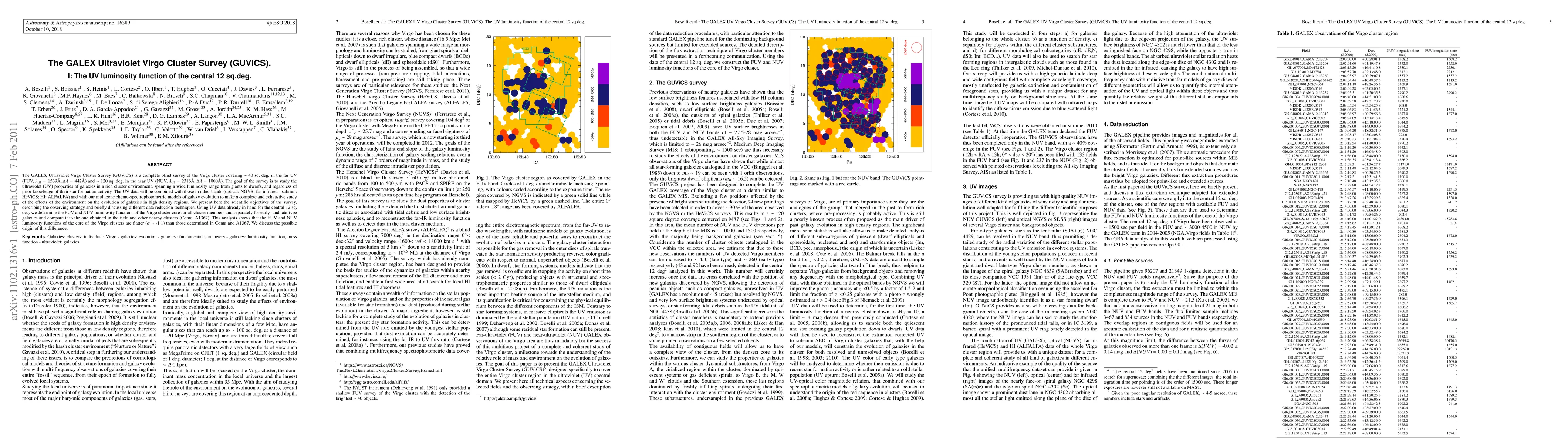 The GALEX Ultraviolet Virgo Cluster Survey (GUViCS) aims to study the UV properties of galaxies in the Virgo cluster, determining the UV luminosity functions for the cluster core. The analysis reveals that the luminosity functions in the Virgo cluster core are flatter than those in other nearby clusters, suggesting different environmental influences.