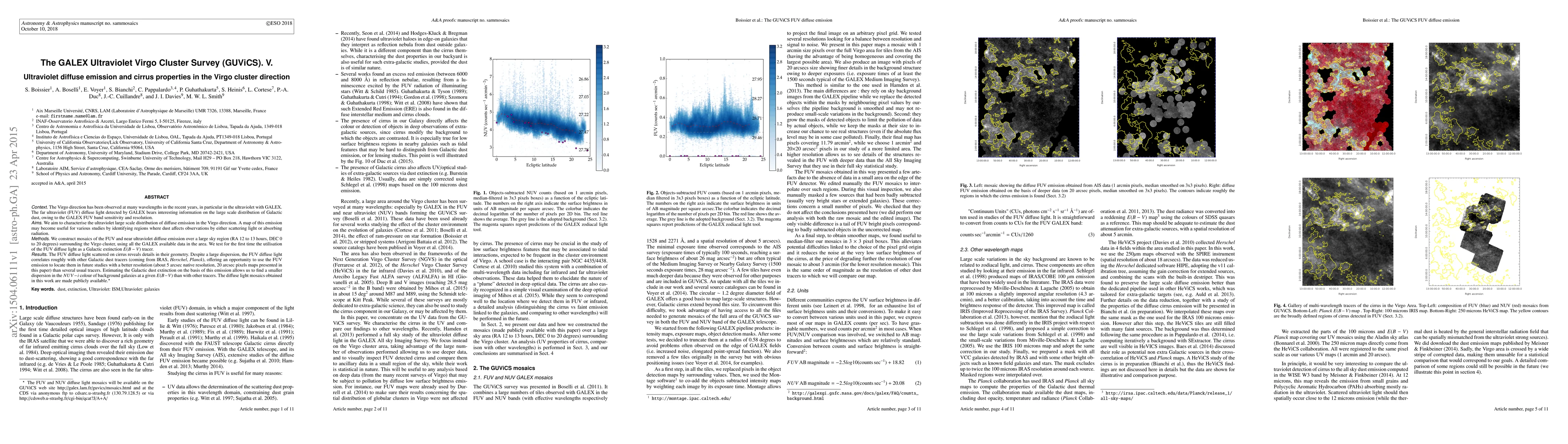 The GALEX Ultraviolet Virgo Cluster Survey (GUViCS) characterizes the ultraviolet diffuse emission in the Virgo cluster direction, revealing details of cirrus geometry and correlating with other Galactic dust tracers. This FUV diffuse light can be used to better locate dust regions in future studies, offering improved resolution and reducing dispersion in background galaxy colors.