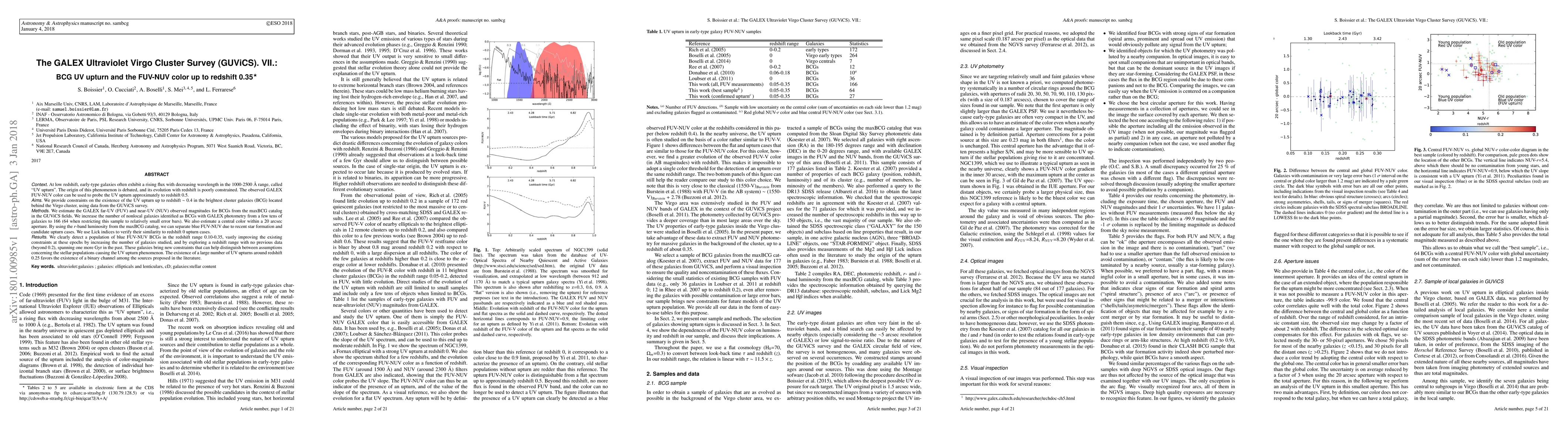 The GUViCS survey detects a significant population of UV upturn in brightest cluster galaxies (BCGs) in the Virgo cluster up to redshift 0.35, providing new constraints on the phenomenon's existence and evolution. These findings support the idea of a binary channel for the UV upturn's origin.