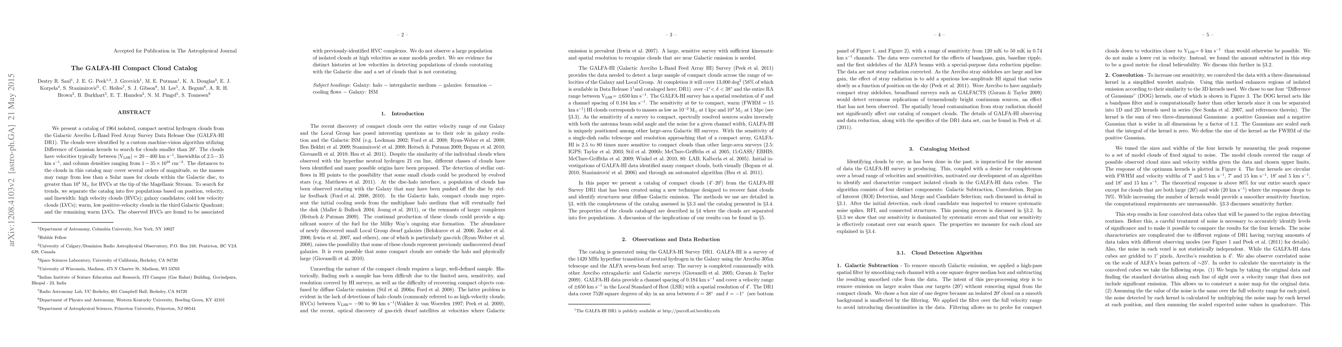 The GALFA-HI Compact Cloud Catalog presents 1964 isolated, compact neutral hydrogen clouds identified via a machine-vision algorithm, with velocities ranging from 20-400 km/s. The study categorizes these clouds into five populations based on their characteristics, revealing no large population of isolated high-velocity clouds as some models suggest.