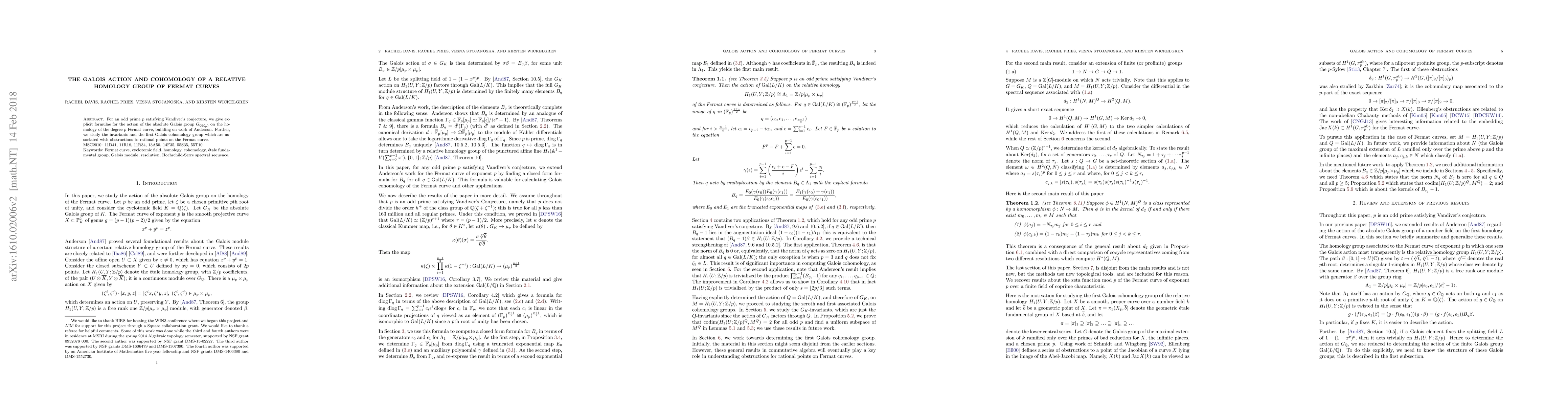 Summary: This paper provides explicit formulae for the Galois group's action on the homology of degree $p$ Fermat curves for primes $p$ satisfying Vandiver's conjecture, and explores invariants and the first Galois cohomology group related to rational points on these curves.
