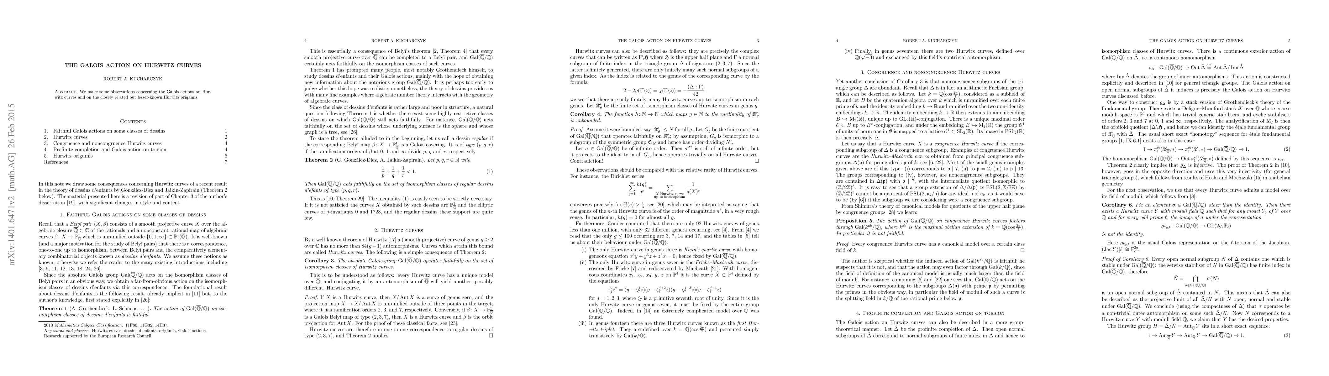 We make some observations concerning the Galois actions on Hurwitz curves and on the closely related but lesser-known Hurwitz origamis.