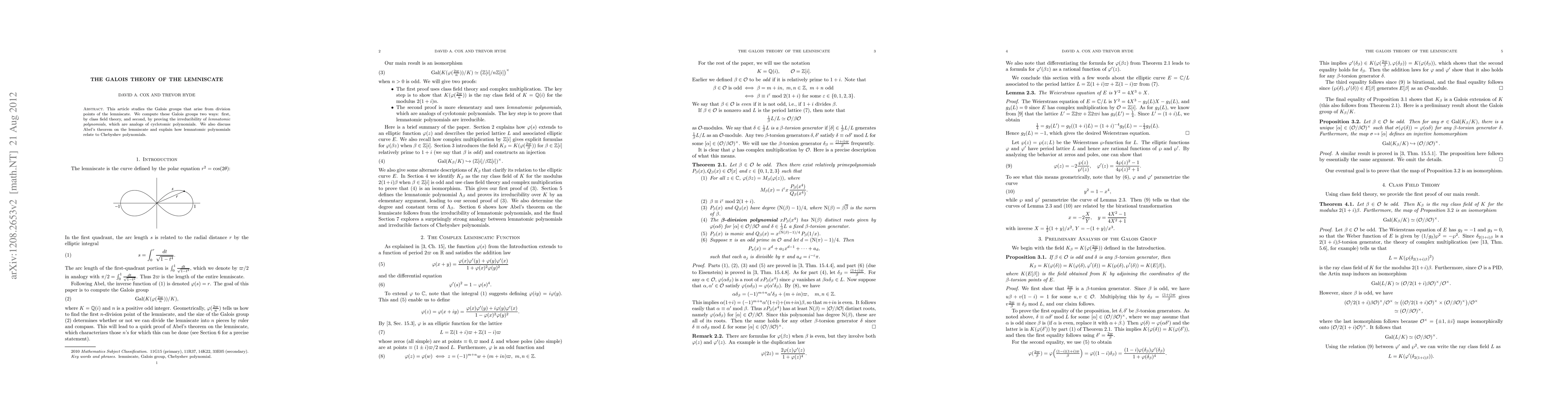 Researchers explored the Galois groups of lemniscate division points using class field theory and proved the irreducibility of lemnatomic polynomials, shedding light on connections to Chebyshev polynomials.