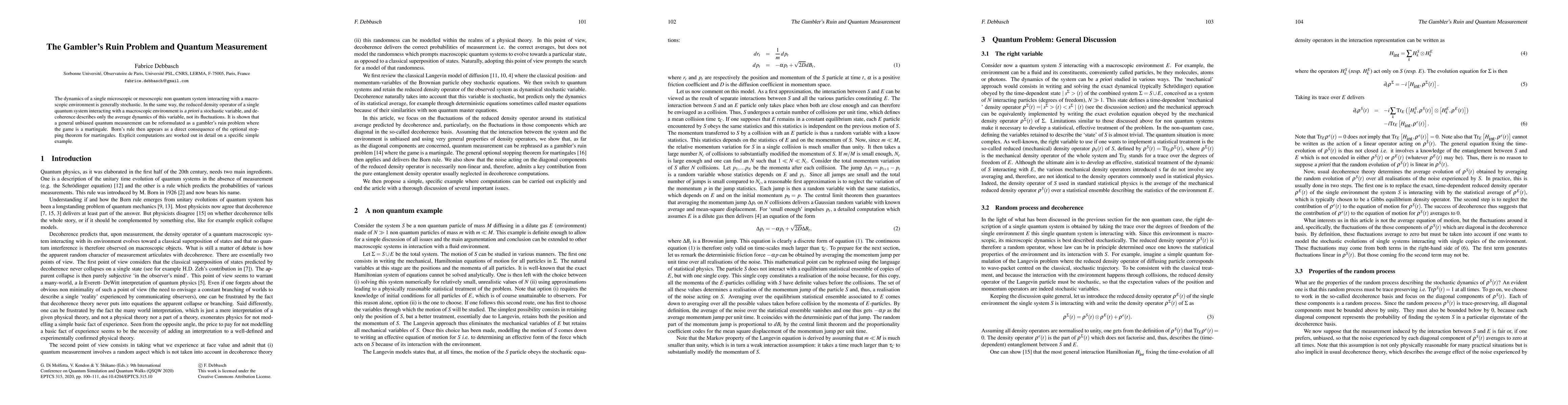 A research paper shows that quantum measurement can be reformulated as a gambler's ruin problem, where Born's rule is derived from the optional stopping theorem for martingales.