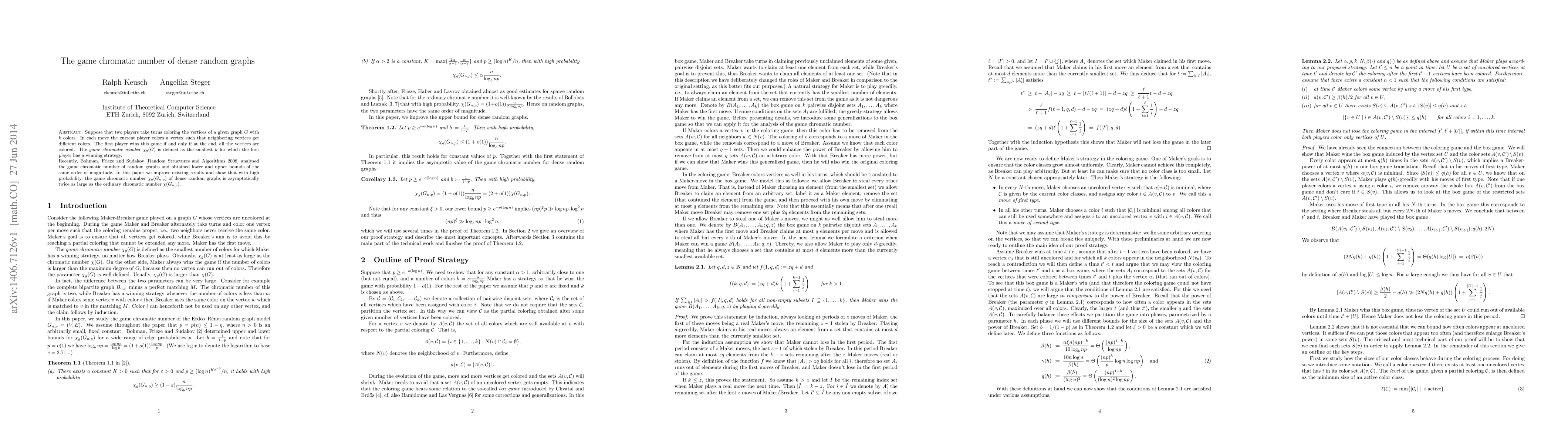 Suppose that two players take turns coloring the vertices of a given graph G with k colors. In each move the current player colors a vertex such that neighboring vertices get different colors. The first player wins this game if and only if at the end, all the vertices are colored. The game chromatic number $\chi_g(G)$ is defined as the smallest k for which the first player has a winning strategy. Recently, Bohman, Frieze and Sudakov [Random Structures and Algorithms 2008] analysed the game chromatic number of random graphs and obtained lower and upper bounds of the same order of magnitude. In this paper we improve existing results and show that with high probability, the game chromatic number $\chi_g(G_{n,p})$ of dense random graphs is asymptotically twice as large as the ordinary chromatic number $\chi(G_{n,p})$.