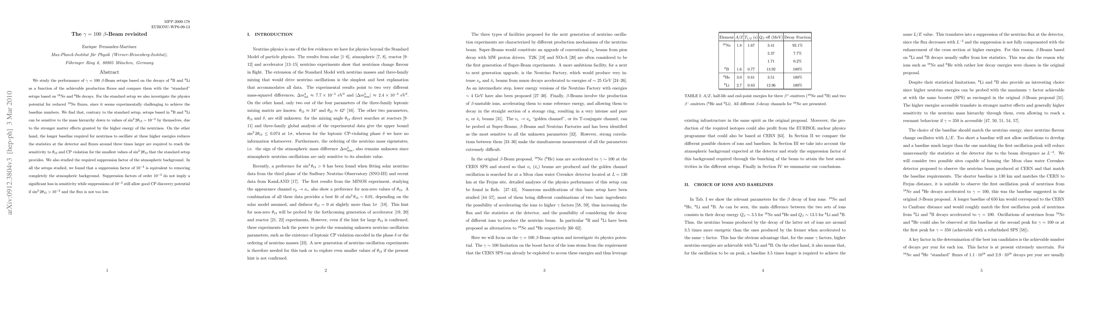 We study the performance of gamma = 100 Beta-Beam setups based on the decays of 8B and 8Li as a function of the achievable production fluxes and compare them with the standard setups based on 18Ne and 6He decays. For the standard setup we also investigate the physics potential for reduced 18Ne fluxes, since it seems experimentally challenging to achieve the baseline numbers. We find that, contrary to the standard setup, setups based in 8B and 8Li can be sensitive to the mass hierarchy down to values of sin^2 2theta_{13} > 10^-2 by themselves, due to the stronger matter effects granted by the higher energy of the neutrinos. On the other hand, the longer baseline required for neutrinos to oscillate at these higher energies reduces the statistics at the detector and fluxes around three times larger are required to reach the sensitivity to theta_{13} and CP violation for the smallest values of sin^2 2theta_{13} that the standard setup provides. We also studied the required suppression factor of the atmospheric background. In all the setups studied, we found that a suppression factor of 10^-4 is equivalent to removing completely the atmospheric background. Suppression factors of order 10^-3 do not imply a significant loss in sensitivity while suppressions of 10^-2 still allow good CP discovery potential if sin^2 2theta_{13} > 10^-2 and the flux is not too low.
