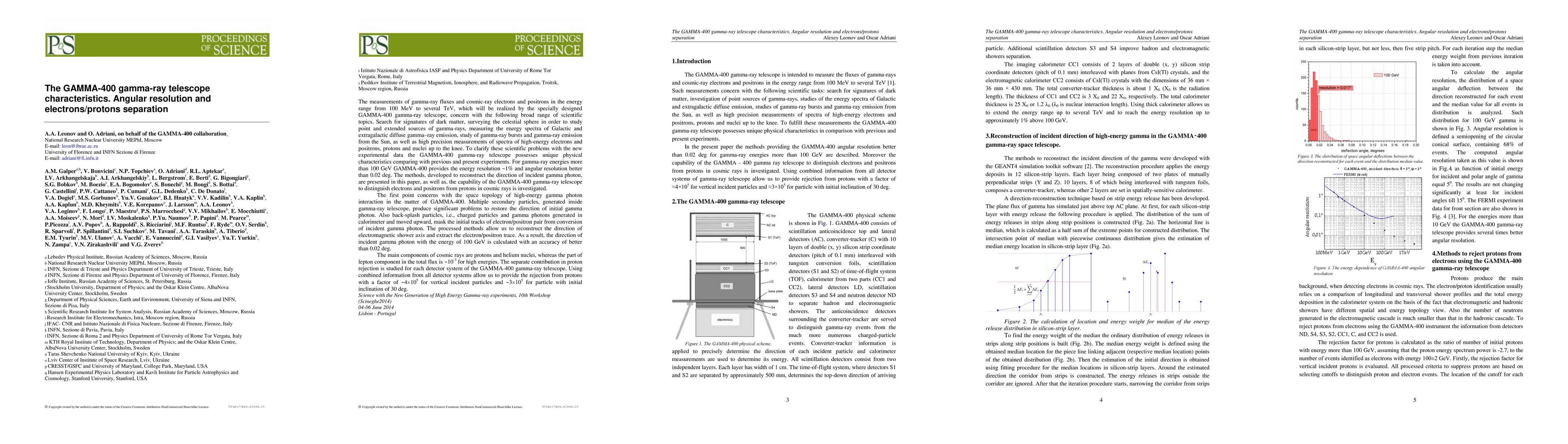 The GAMMA-400 gamma-ray telescope offers exceptional angular resolution (<0.02 deg) and electron-proton separation capabilities for gamma-ray energies above 100 GeV, enabling precise measurements of cosmic-ray electrons, positrons, and protons up to the knee energy.