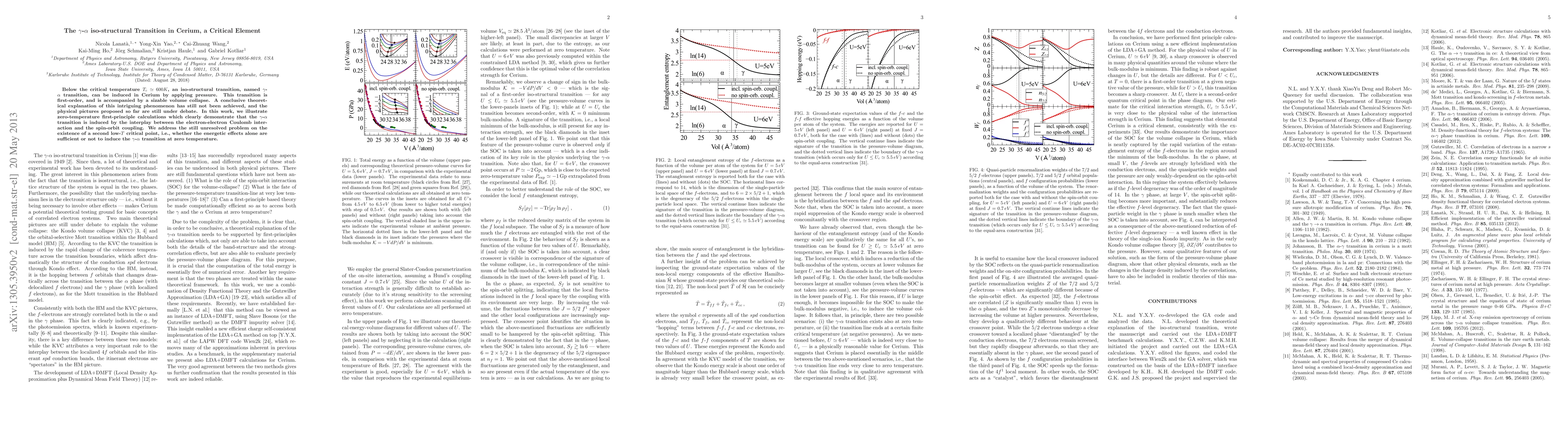 Below the critical temperature $T_c\simeq 600 K$, an iso-structural transition, named $\gamma$-$\alpha$ transition,can be induced in Cerium by applying pressure. This transition is first-order, and is accompanied by a sizable volume collapse. A conclusive theoretical explanation of this intriguing phenomenon has still not been achieved, and the physical pictures proposed so far are still under debate. In this work, we illustrate zero-temperature first-principle calculations which clearly demonstrate that the $\gamma$-$\alpha$ transition is induced by the interplay between the electron-electron Coulomb interaction and the spin-orbit coupling. We address the still unresolved problem on the existence of a second low-$T$ critical point, i.e., whether the energetic effects alone are sufficient or not to induce the $\gamma$-$\alpha$ transition at zero temperature.