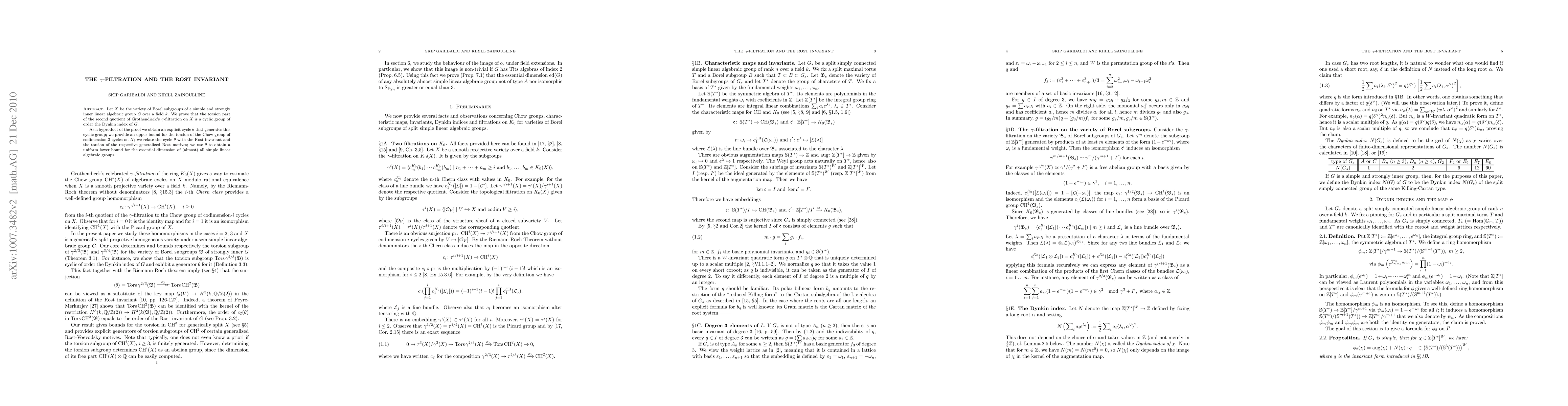 The paper proves that the second quotient of Grothendieck's gamma-filtration on the variety of Borel subgroups of a simple linear algebraic group has a cyclic torsion group whose order matches the Dynkin index, and relates this with the Rost invariant and essential dimension.