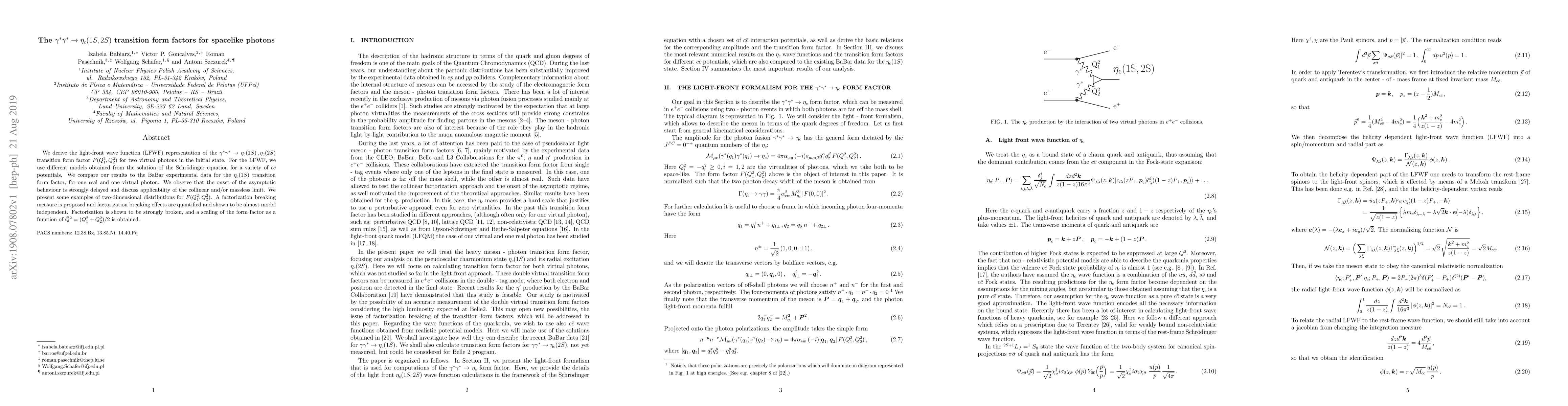 We derive the light-front wave function (LFWF) representation of the $\gamma^* \gamma^* \to \eta_c(1S)\,,\eta_c(2S)$ transition form factor $F(Q_1^2, Q_2^2)$ for two virtual photons in the initial state. For the LFWF, we use different models obtained from the solution of the Schr\"odinger equation for a variety of $c \bar c$ potentials. We compare our results to the BaBar experimental data for the $\eta_c(1S)$ transition form factor, for one real and one virtual photon. We observe that the onset of the asymptotic behaviour is strongly delayed and discuss applicability of the collinear and/or massless limit. We present some examples of two-dimensional distributions for $F (Q_1^2,Q_2^2)$. A factorization breaking measure is proposed and factorization breaking effects are quantified and shown to be almost model independent. Factorization is shown to be strongly broken, and a scaling of the form factor as a function of $\bar Q^2 = (Q_1^2 + Q_2^2)/2$ is obtained.