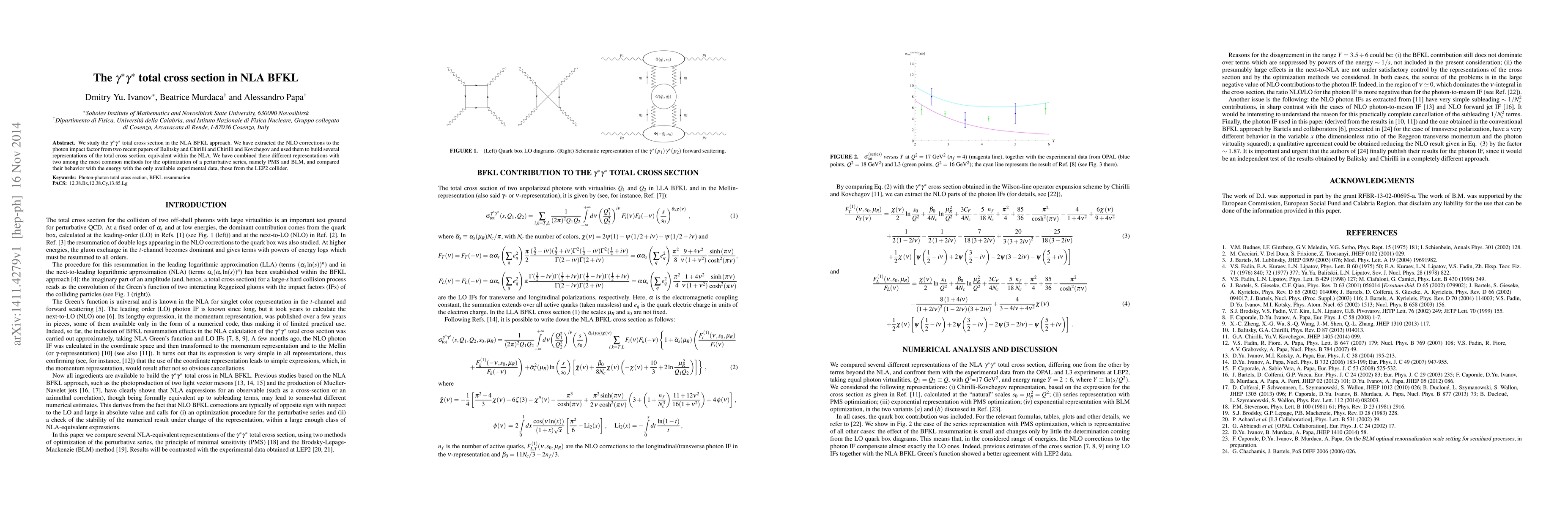 This paper investigates the $\gamma^* \gamma^*$ total cross section using the NLA BFKL approach, incorporating NLO corrections from recent studies to build various representations of the cross section. The study compares the performance of PMS and BLM optimization methods against LEP2 collider data.