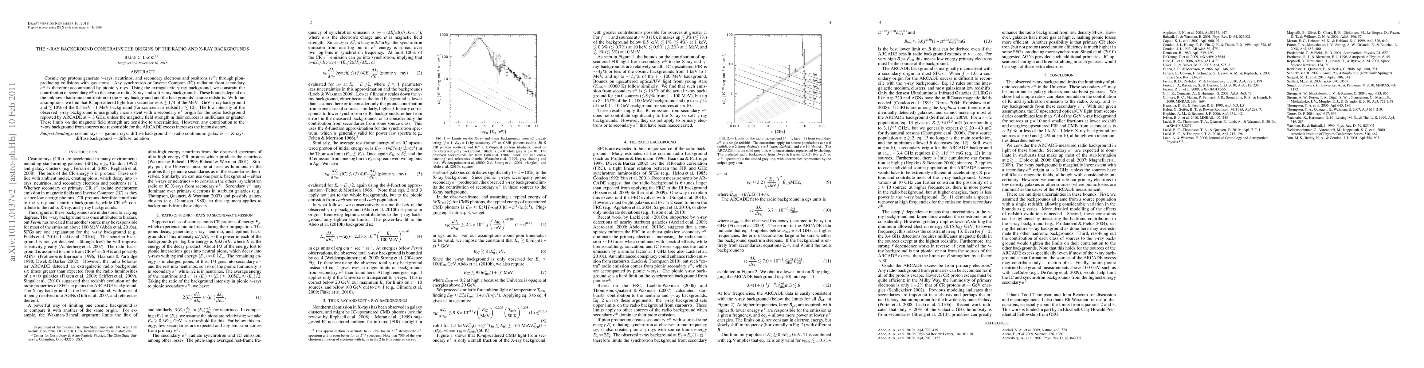 Cosmic ray protons generate gamma-rays, neutrinos, and secondary electrons and positrons (e+/-) through pion-producing collisions with gas atoms. Any synchrotron or Inverse Compton (IC) radiation from secondary e+/- is therefore accompanied by pionic gamma-rays. Using the extragalactic gamma-ray background, we constrain the contribution of secondary e+/- to the cosmic radio, X-ray, and soft gamma-ray backgrounds. These bounds depend on the unknown hadronic contribution to the gamma-ray background and the backgrounds' source redshifts. With our assumptions, we find that IC-upscattered light from secondaries is <~ 1/4 of the MeV - GeV gamma-ray background and <~ 10% of the 0.5 keV - 1 MeV background (for sources at a redshift z <~ 10). The low intensity of the observed gamma-ray background is marginally inconsistent with a secondary e+/- origin for the radio background reported by ARCADE at ~3 GHz, unless the magnetic field strength in their sources is milliGauss or greater. These limits on the magnetic field strength are sensitive to uncertainties. However, any contribution to the gamma-ray background from sources not responsible for the ARCADE excess increases the inconsistency.